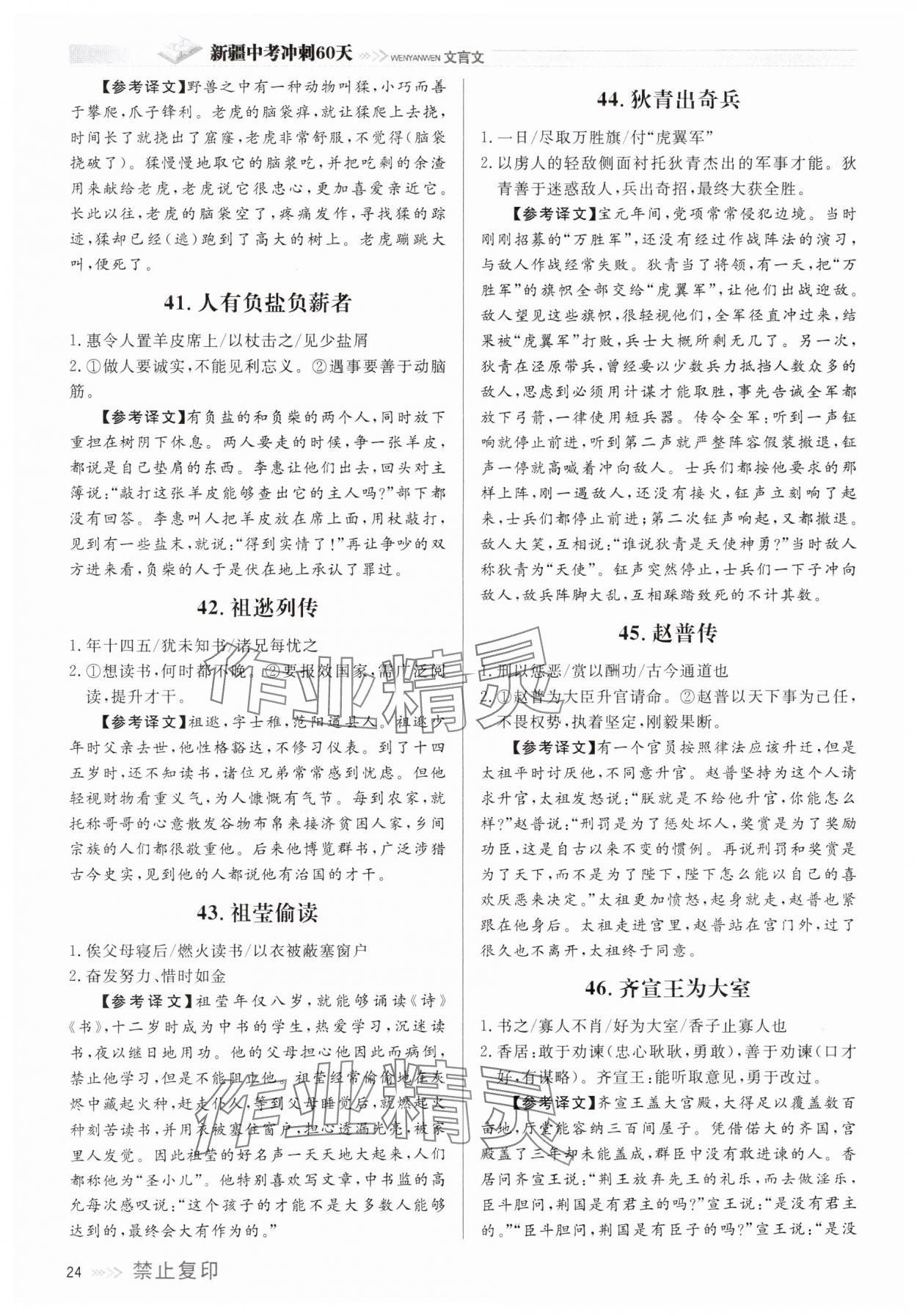注:目前有些书本章节名称可能整理的还不是很完善,但都是按照顺序排列的,请同学们按照顺序仔细查找。练习册 2025年中考冲刺60天语文文言文新疆专版 答案主要是用来给同学们做完题方便对答案用的,请勿直接抄袭。