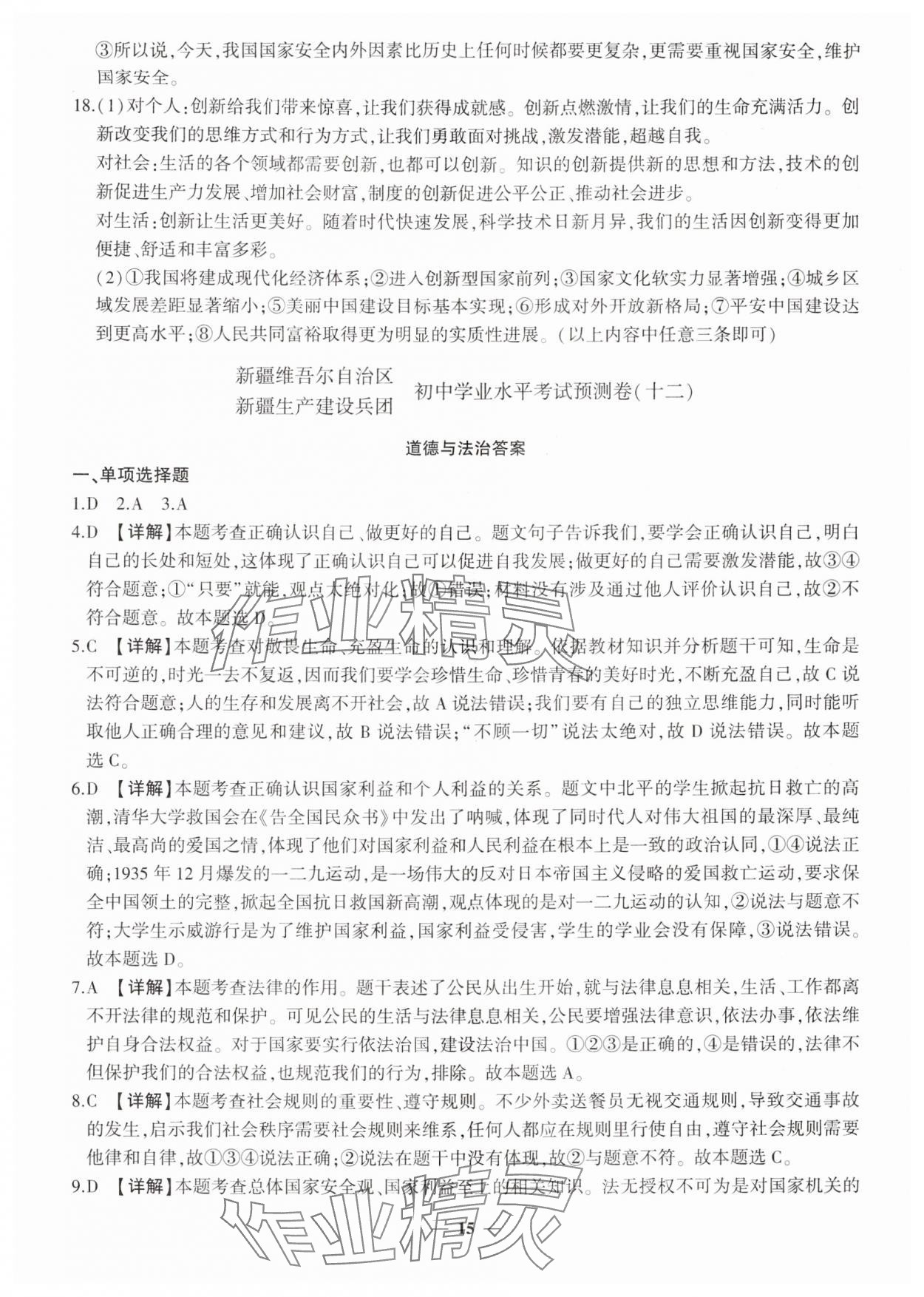 注:目前有些书本章节名称可能整理的还不是很完善,但都是按照顺序排列的,请同学们按照顺序仔细查找。练习册 2025年中考五考合一预测卷道德与法治新疆专版 答案主要是用来给同学们做完题方便对答案用的,请勿直接抄袭。