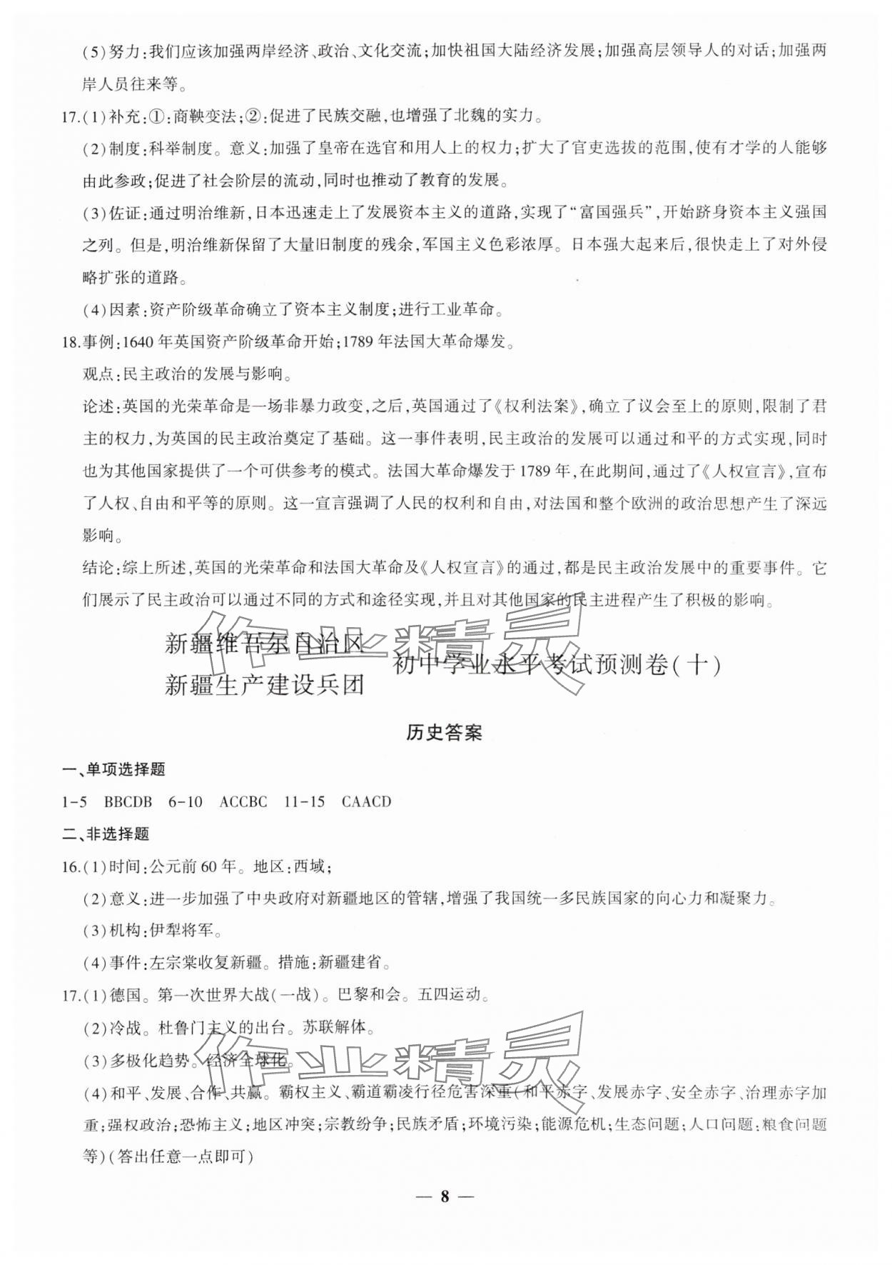 注:目前有些书本章节名称可能整理的还不是很完善,但都是按照顺序排列的,请同学们按照顺序仔细查找。练习册 2025年中考五考合一预测卷历史新疆专版 答案主要是用来给同学们做完题方便对答案用的,请勿直接抄袭。