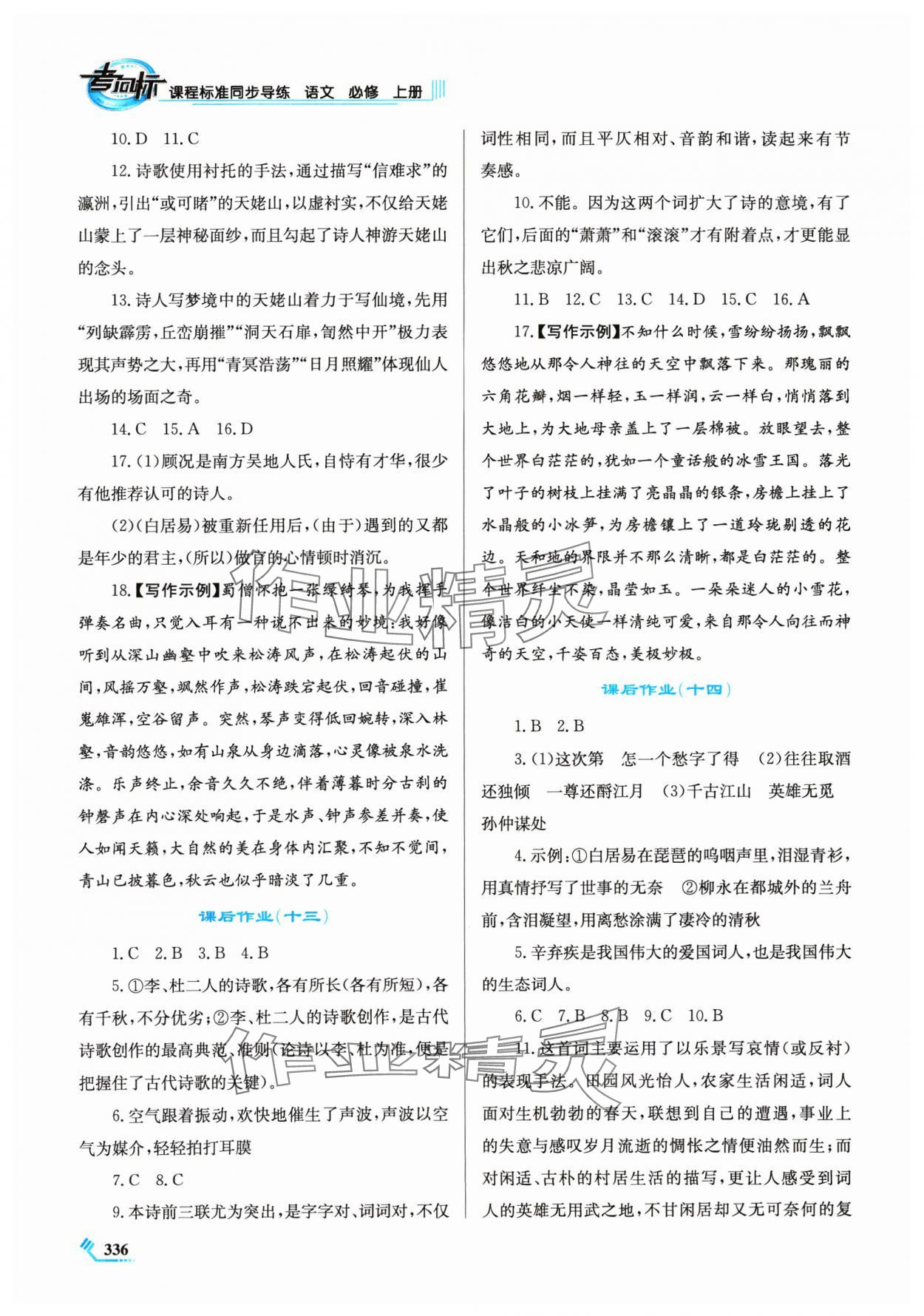 注:目前有些书本章节名称可能整理的还不是很完善,但都是按照顺序排列的,请同学们按照顺序仔细查找。练习册 2024年课程标准同步导练语文必修上册人教版 答案主要是用来给同学们做完题方便对答案用的,请勿直接抄袭。