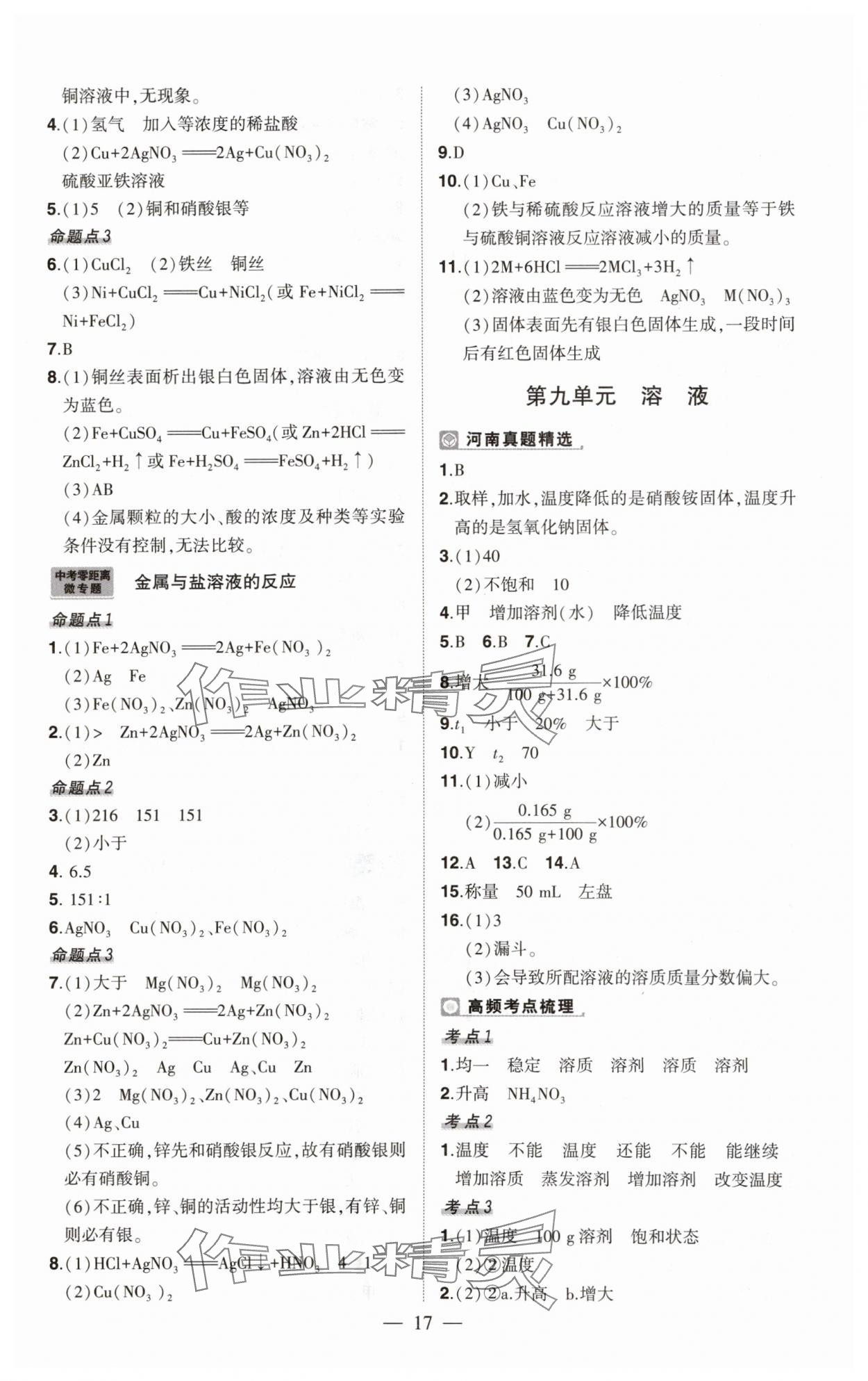 注:目前有些书本章节名称可能整理的还不是很完善,但都是按照顺序排列的,请同学们按照顺序仔细查找。练习册 2025年河南中考南方出版社化学精华版 答案主要是用来给同学们做完题方便对答案用的,请勿直接抄袭。