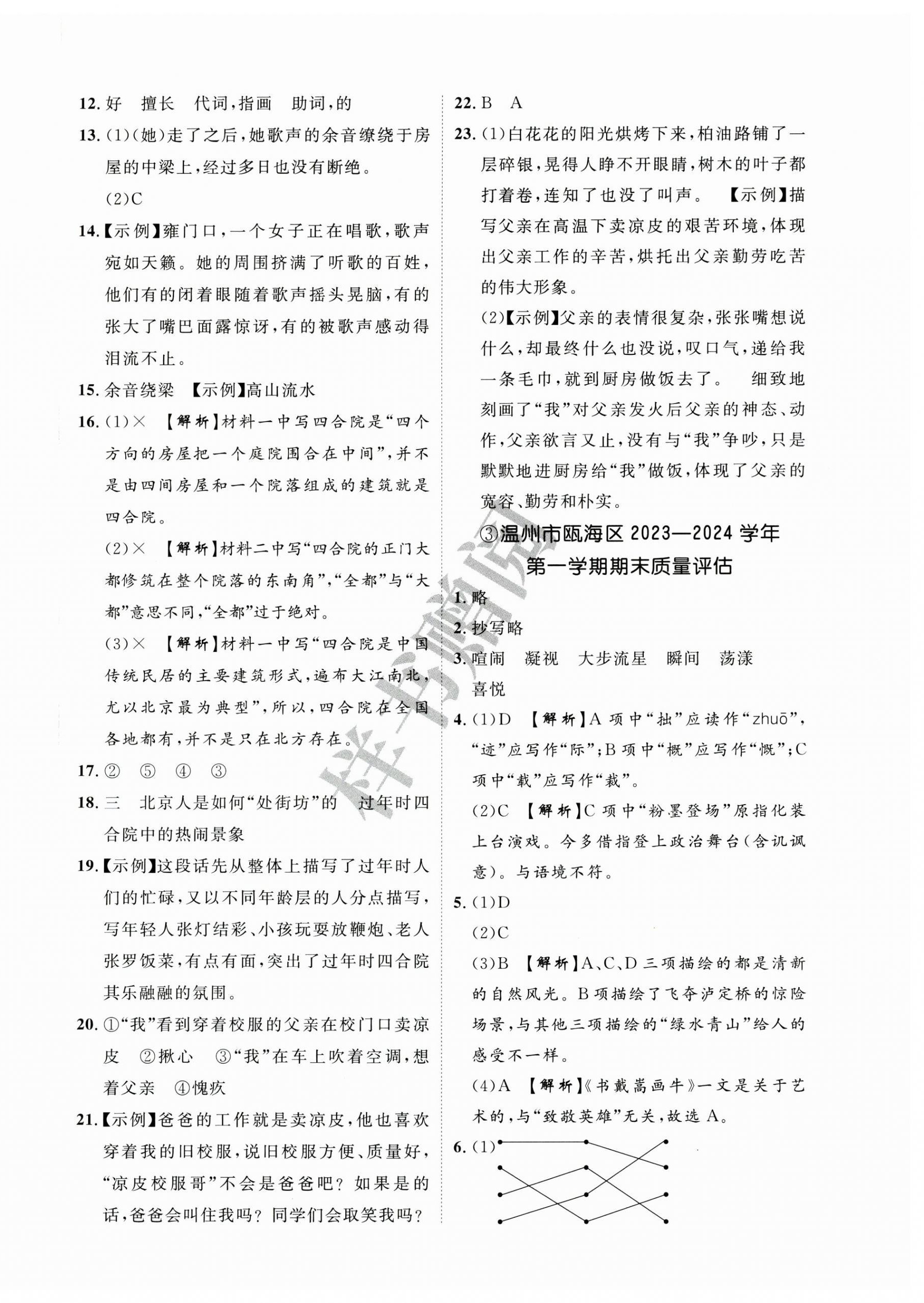 注:目前有些书本章节名称可能整理的还不是很完善,但都是按照顺序排列的,请同学们按照顺序仔细查找。练习册 2024年期末真题新卷六年级语文上册人教版浙江专版 答案主要是用来给同学们做完题方便对答案用的,请勿直接抄袭。