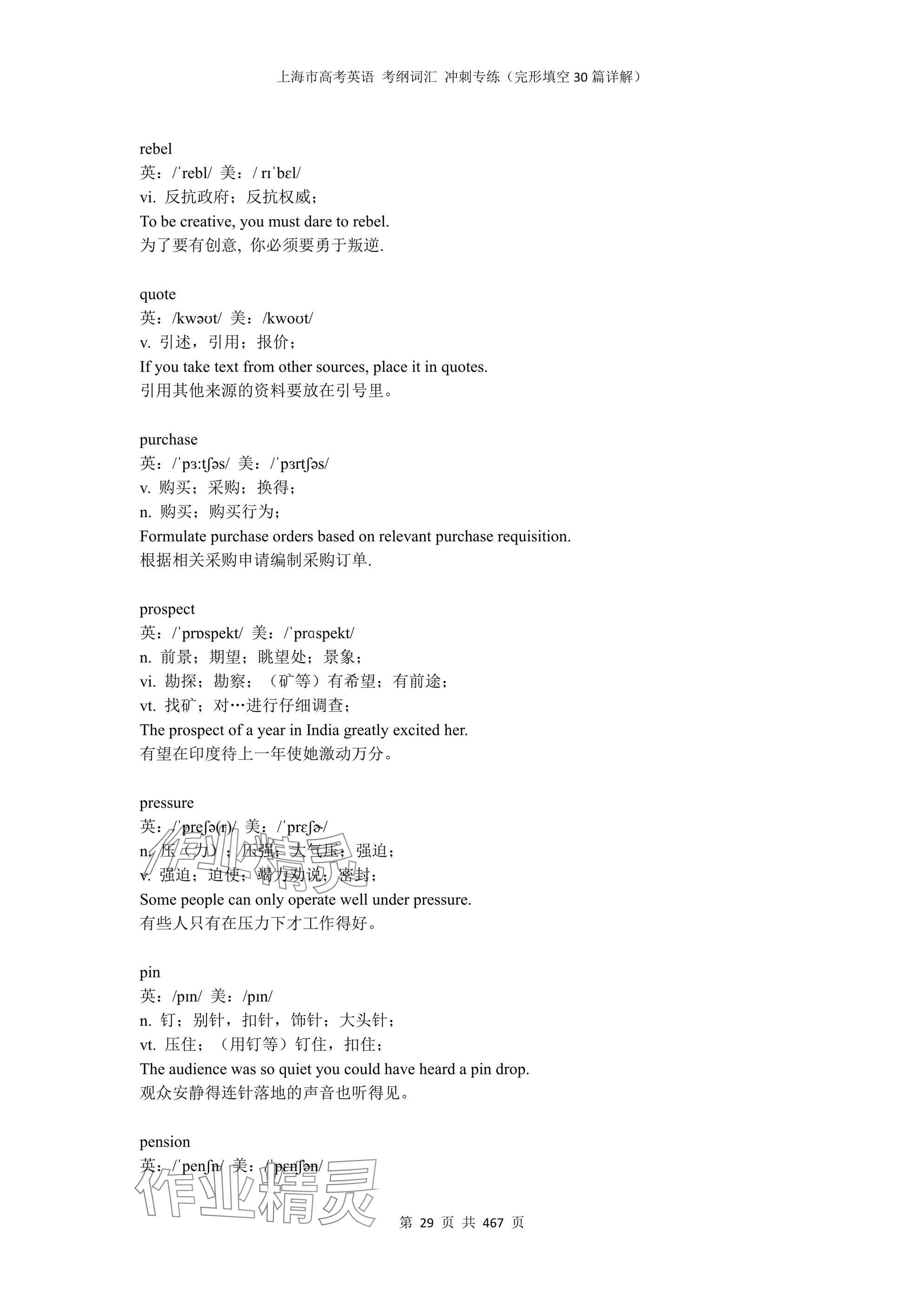 2025年上海市高考英语考纲词汇练习册