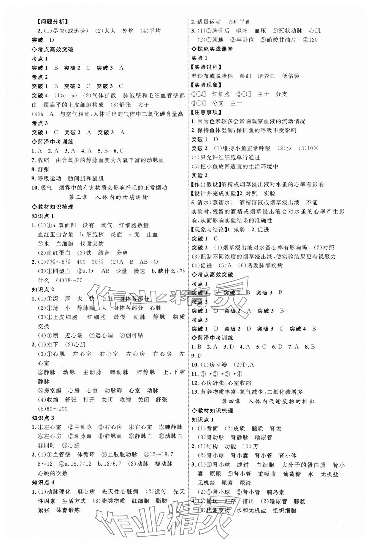 注:目前有些书本章节名称可能整理的还不是很完善,但都是按照顺序排列的,请同学们按照顺序仔细查找。练习册 2025年全程导航初中总复习生物济南版菏泽专版 答案主要是用来给同学们做完题方便对答案用的,请勿直接抄袭。