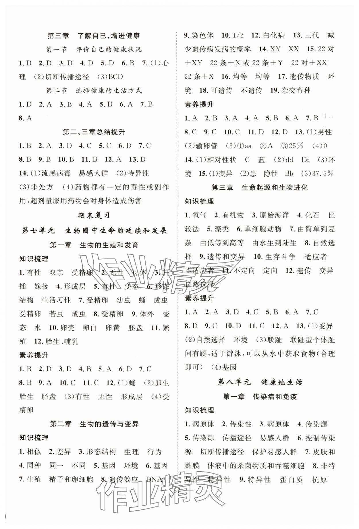 注:目前有些书本章节名称可能整理的还不是很完善,但都是按照顺序排列的,请同学们按照顺序仔细查找。练习册 2025年优质课堂导学案八年级生物下册人教版 答案主要是用来给同学们做完题方便对答案用的,请勿直接抄袭。