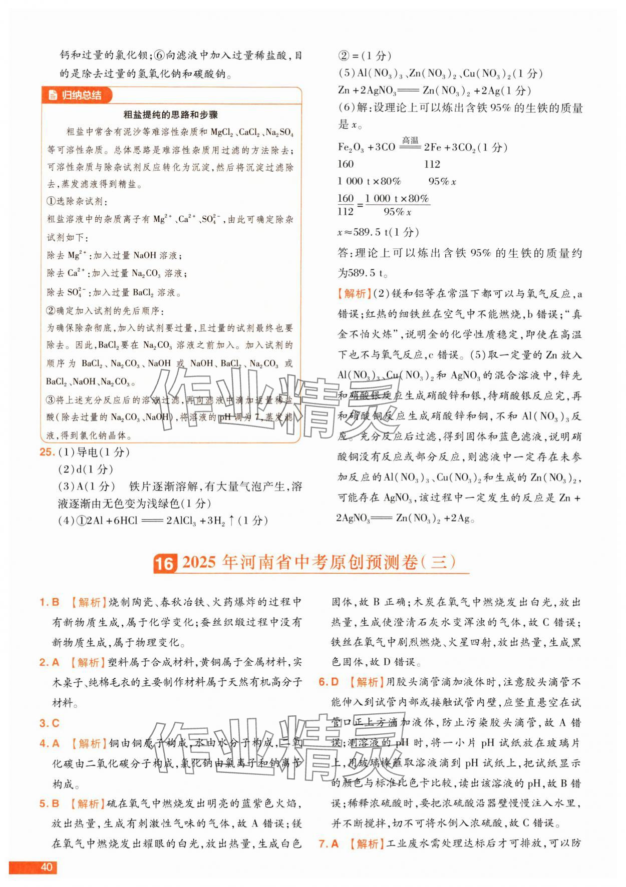 注:目前有些书本章节名称可能整理的还不是很完善,但都是按照顺序排列的,请同学们按照顺序仔细查找。练习册 2025年中考帮真题必刷化学中考河南专版 答案主要是用来给同学们做完题方便对答案用的,请勿直接抄袭。