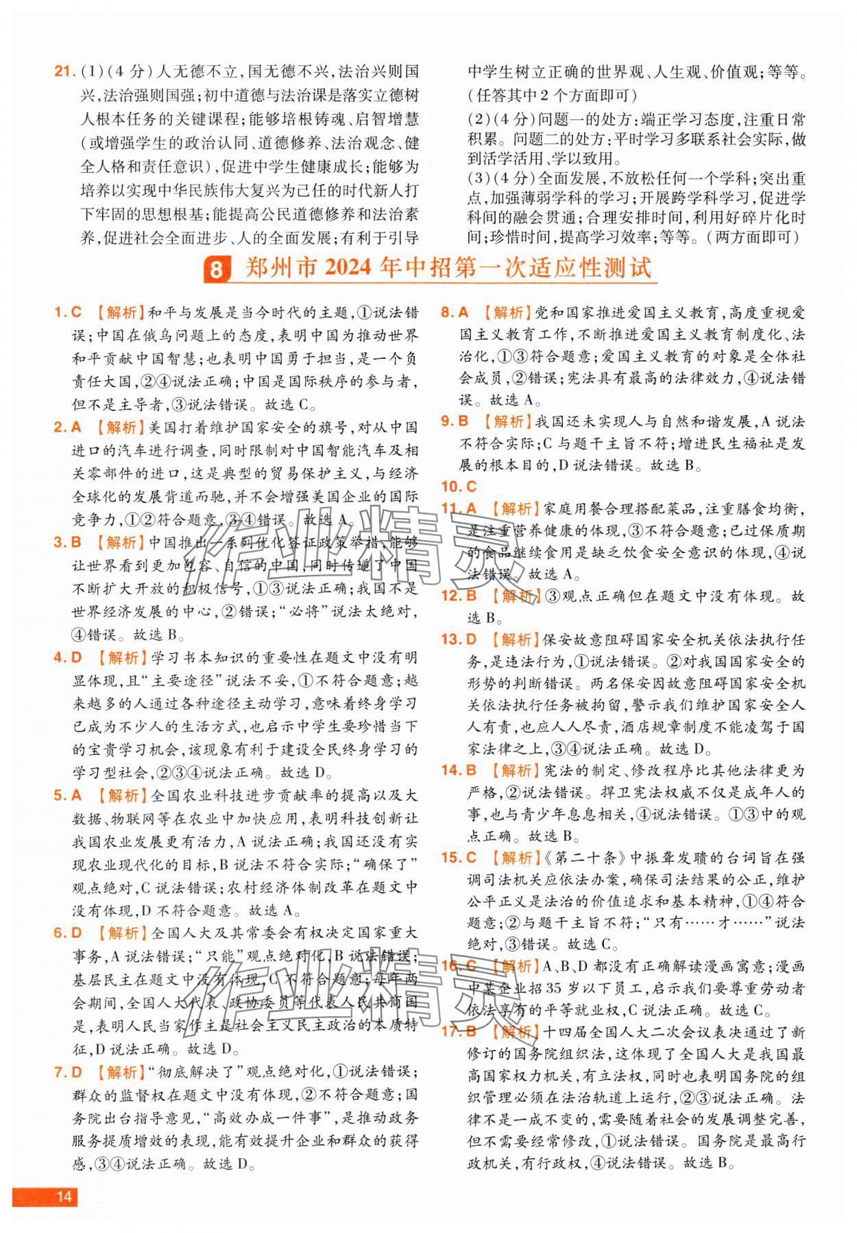 参考答案第14页