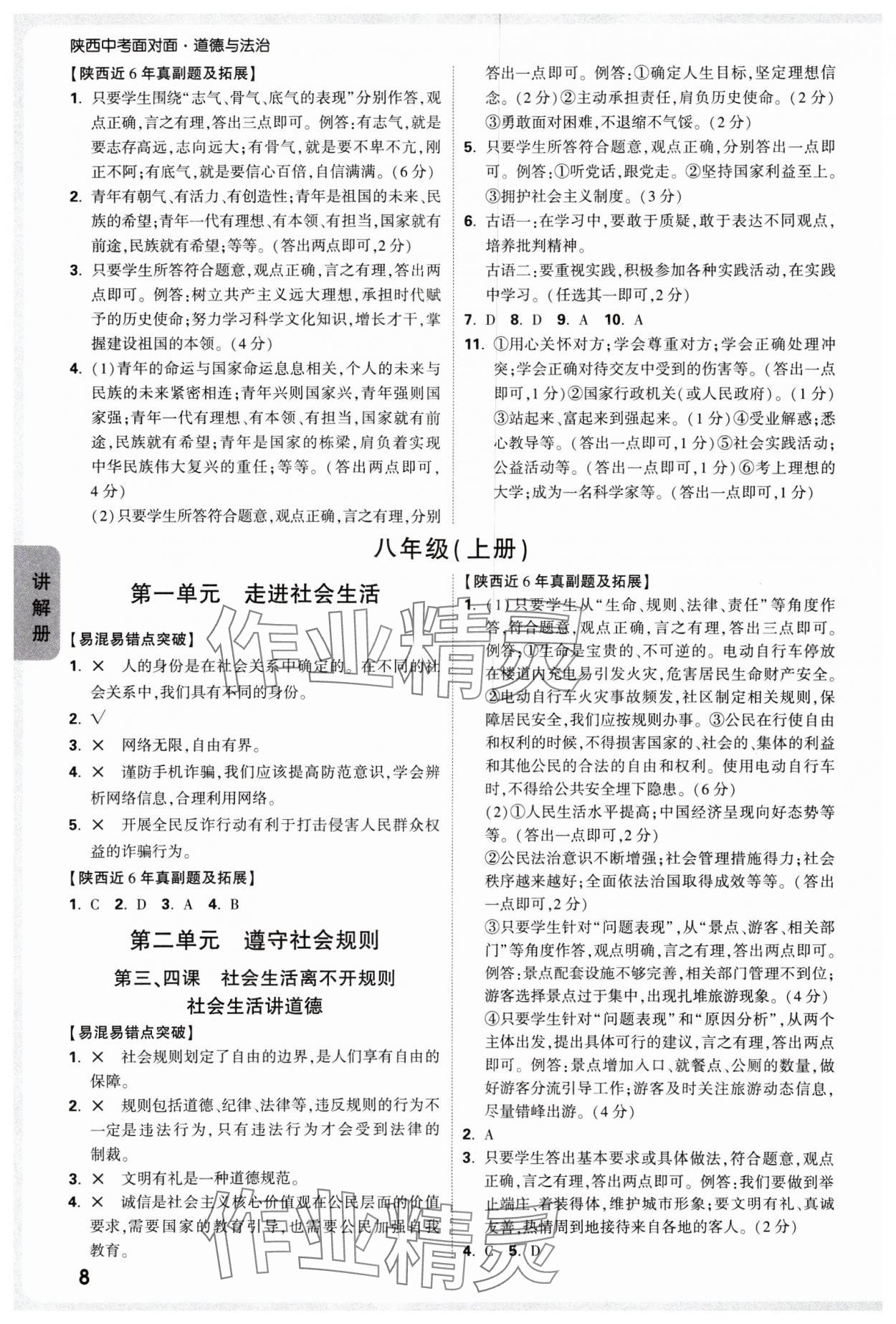 注:目前有些书本章节名称可能整理的还不是很完善,但都是按照顺序排列的,请同学们按照顺序仔细查找。练习册 2025年中考面对面道德与法治人教版陕西专版 答案主要是用来给同学们做完题方便对答案用的,请勿直接抄袭。
