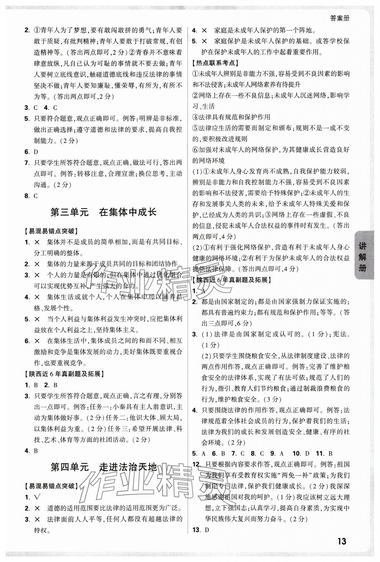 注:目前有些书本章节名称可能整理的还不是很完善,但都是按照顺序排列的,请同学们按照顺序仔细查找。练习册 2025年中考面对面道德与法治人教版陕西专版 答案主要是用来给同学们做完题方便对答案用的,请勿直接抄袭。