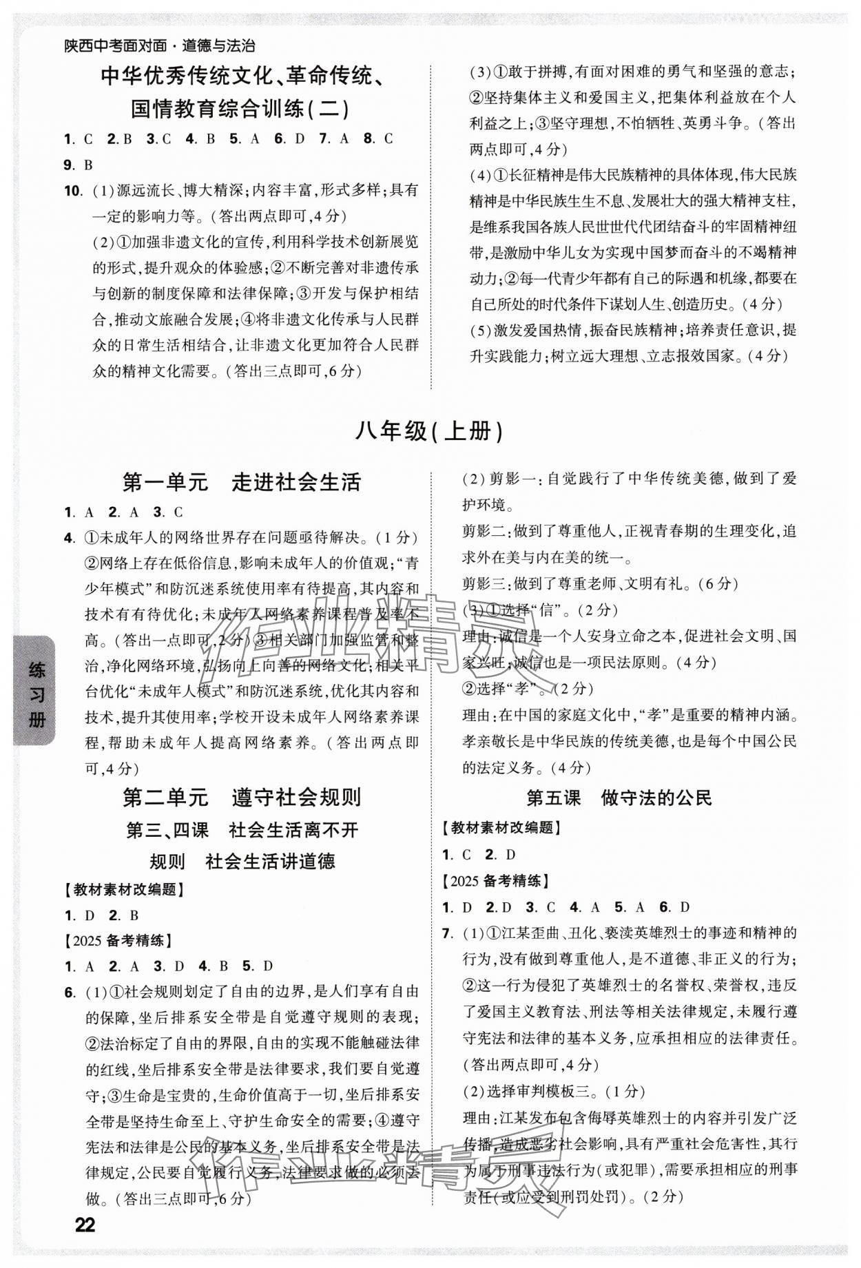 注:目前有些书本章节名称可能整理的还不是很完善,但都是按照顺序排列的,请同学们按照顺序仔细查找。练习册 2025年中考面对面道德与法治人教版陕西专版 答案主要是用来给同学们做完题方便对答案用的,请勿直接抄袭。
