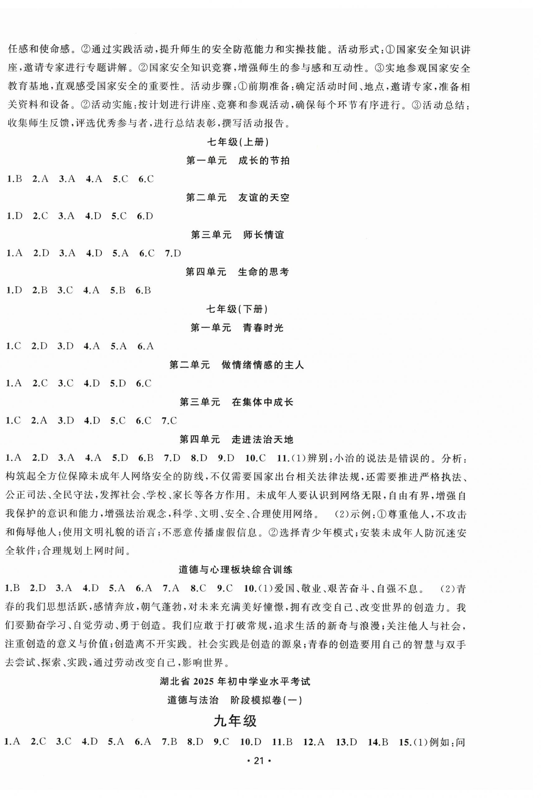 注:目前有些书本章节名称可能整理的还不是很完善,但都是按照顺序排列的,请同学们按照顺序仔细查找。练习册 2025年黄冈金牌之路中考精英总复习道德与法治湖北专版 答案主要是用来给同学们做完题方便对答案用的,请勿直接抄袭。