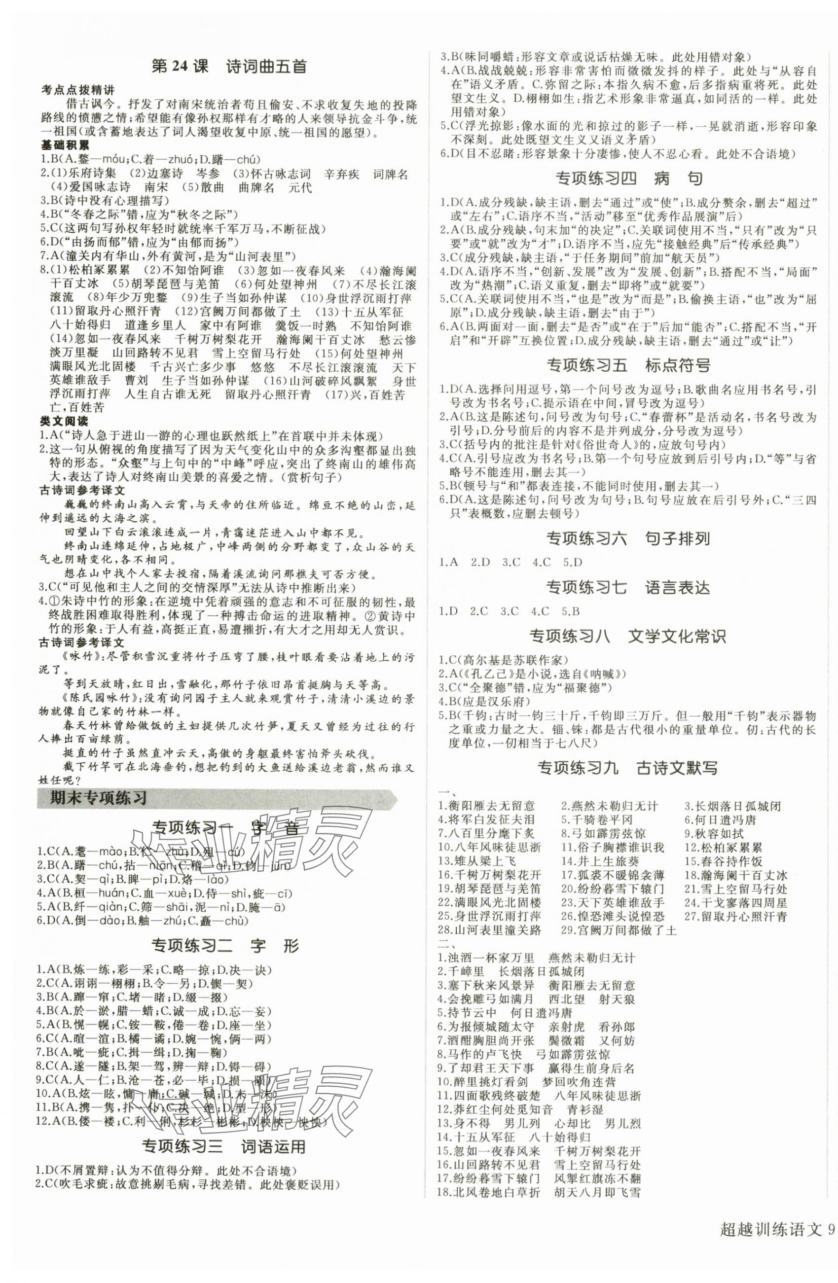 注:目前有些书本章节名称可能整理的还不是很完善,但都是按照顺序排列的,请同学们按照顺序仔细查找。练习册 2025年超越训练九年级语文下册人教版四川专版 答案主要是用来给同学们做完题方便对答案用的,请勿直接抄袭。