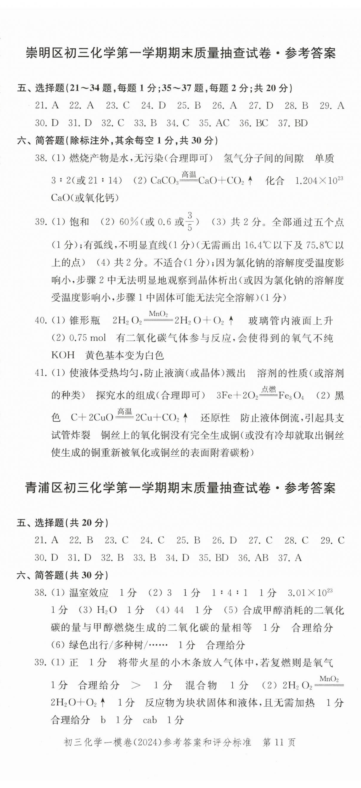 精英家教网> 2025年文化课强化训练化学中考三年合订本2022~2024 > 第11页 参考答案