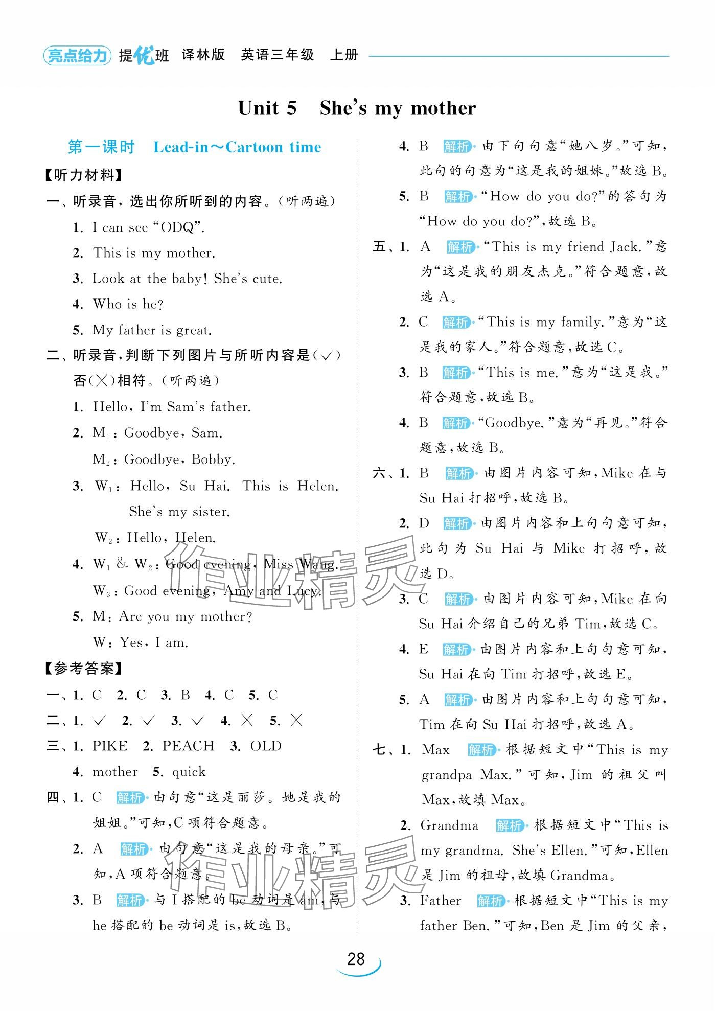 注:目前有些书本章节名称可能整理的还不是很完善,但都是按照顺序排列的,请同学们按照顺序仔细查找。练习册 2024年亮点给力提优班三年级英语上册译林版 答案主要是用来给同学们做完题方便对答案用的,请勿直接抄袭。