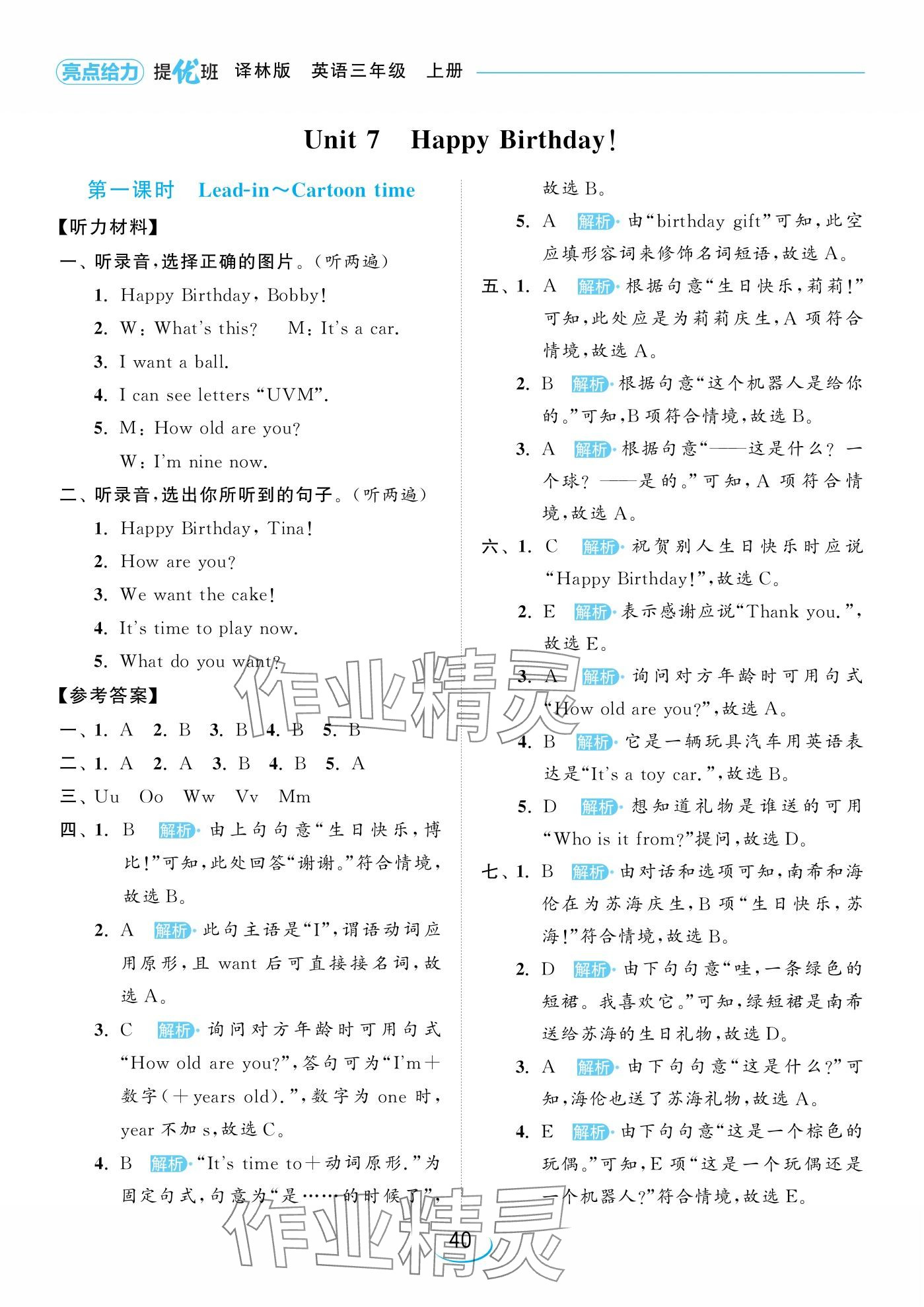 注:目前有些书本章节名称可能整理的还不是很完善,但都是按照顺序排列的,请同学们按照顺序仔细查找。练习册 2024年亮点给力提优班三年级英语上册译林版 答案主要是用来给同学们做完题方便对答案用的,请勿直接抄袭。