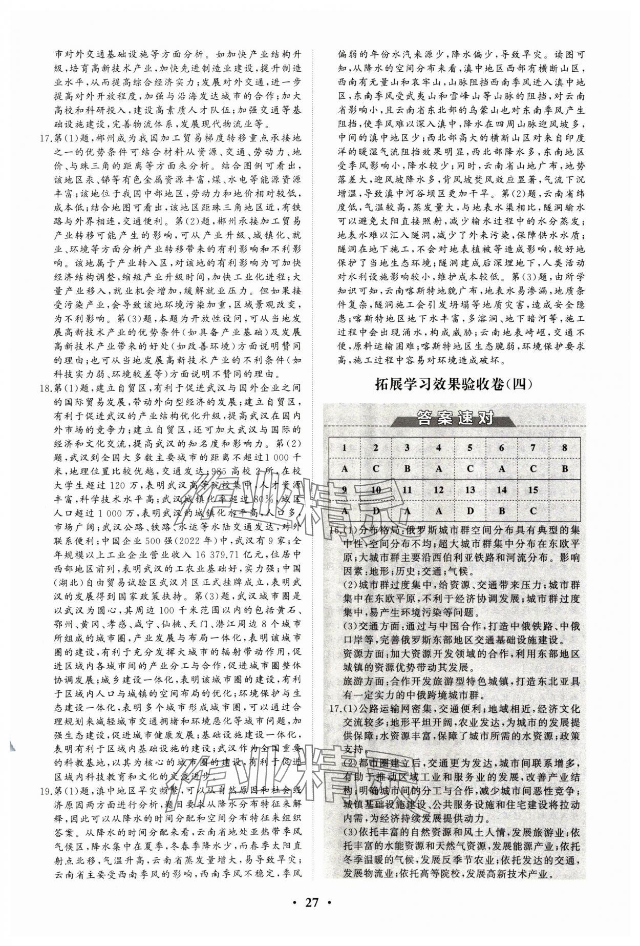 《2024年同步练习册分层检测卷高中地理选择性必修2区域发展鲁教版》