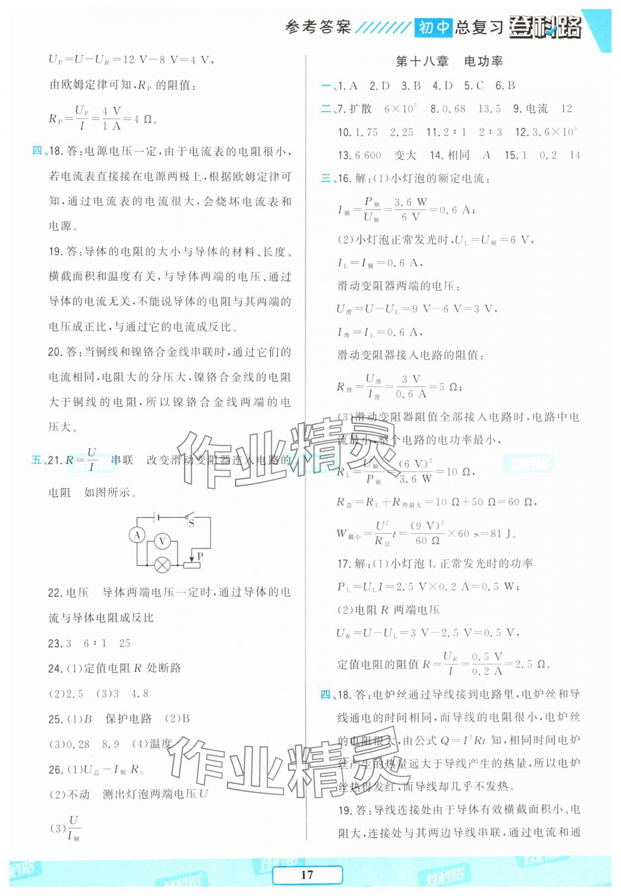 注:目前有些书本章节名称可能整理的还不是很完善,但都是按照顺序排列的,请同学们按照顺序仔细查找。练习册 2025年胜券在握初中总复习物理人教版 答案主要是用来给同学们做完题方便对答案用的,请勿直接抄袭。