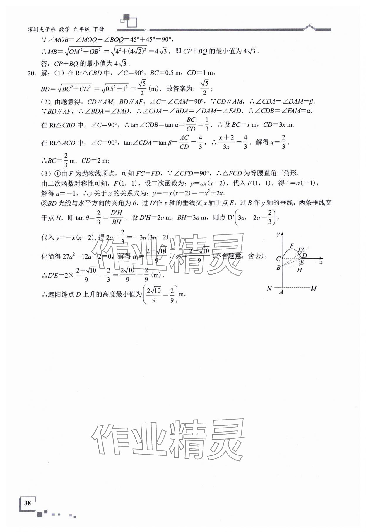 2025年优蓝数学深圳尖子班九年级数学下册北师大版深圳专版