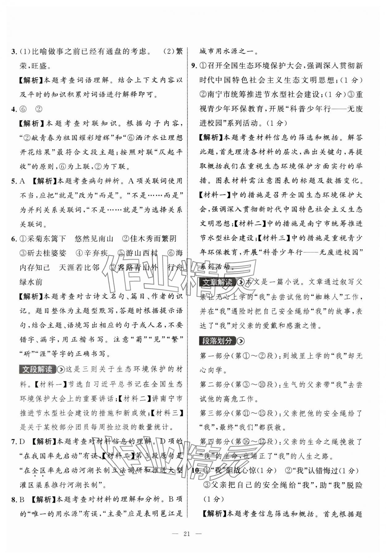 注:目前有些书本章节名称可能整理的还不是很完善,但都是按照顺序排列的,请同学们按照顺序仔细查找。练习册 2025年中考备考指南广西2年真题1年模拟试卷语文 答案主要是用来给同学们做完题方便对答案用的,请勿直接抄袭。