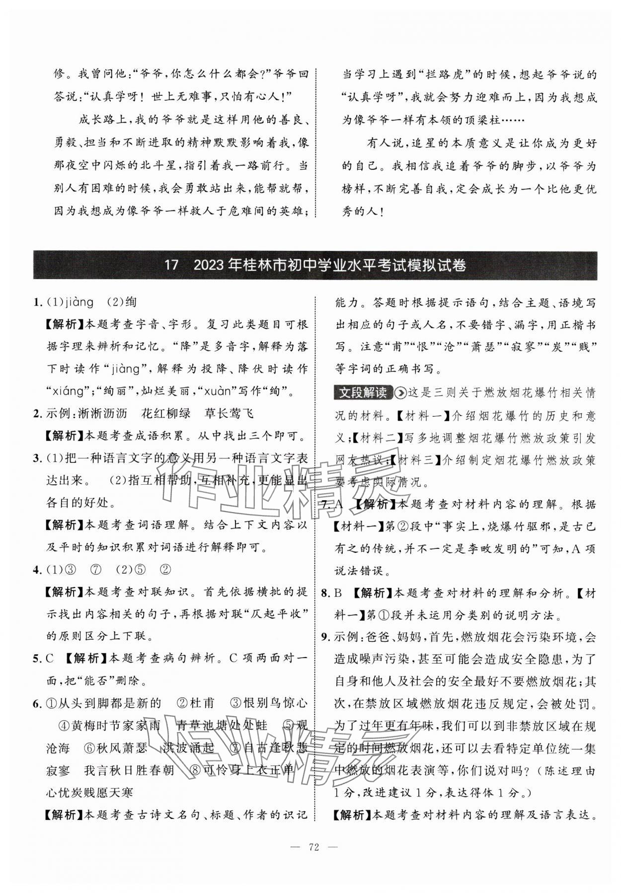 注:目前有些书本章节名称可能整理的还不是很完善,但都是按照顺序排列的,请同学们按照顺序仔细查找。练习册 2025年中考备考指南广西2年真题1年模拟试卷语文 答案主要是用来给同学们做完题方便对答案用的,请勿直接抄袭。