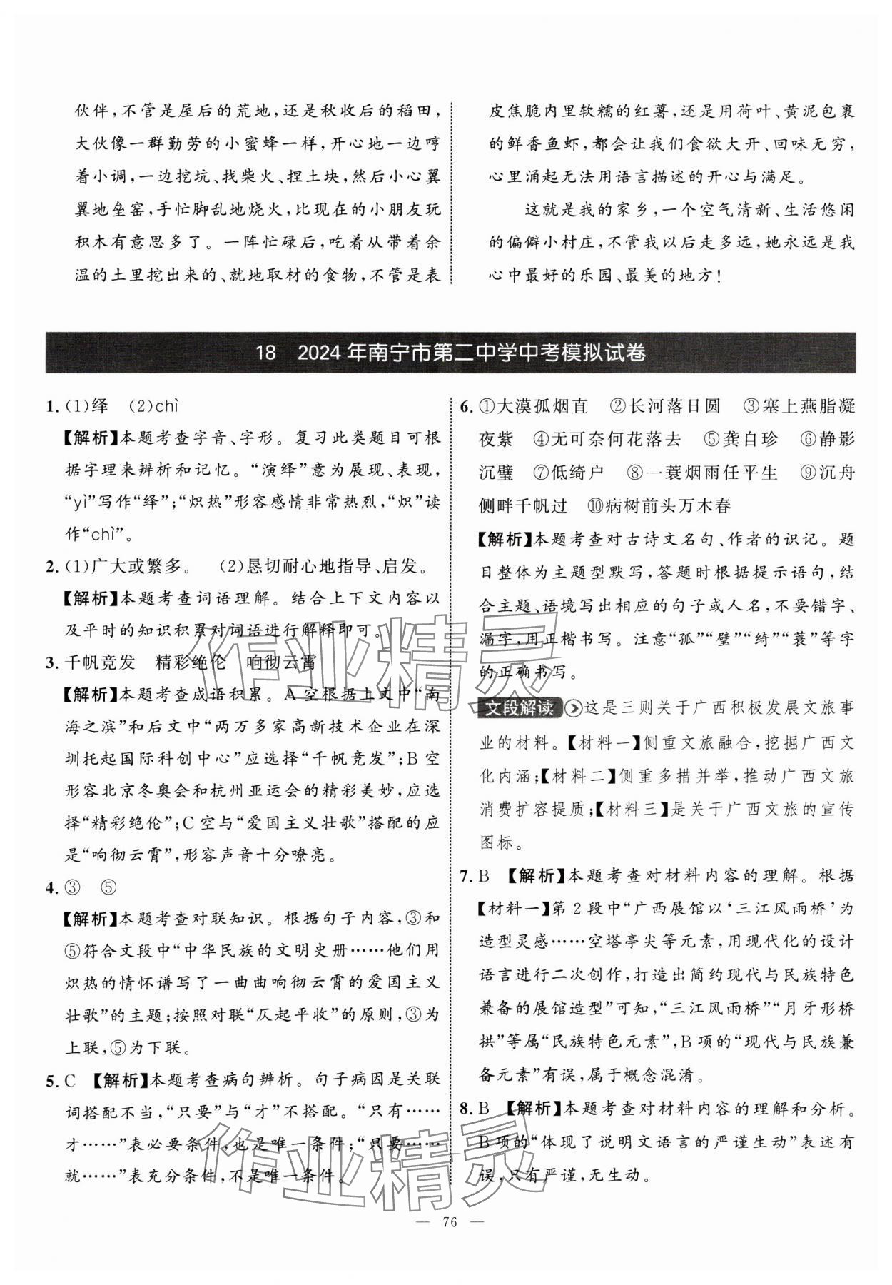2025年中考备考指南广西2年真题1年模拟试卷语文