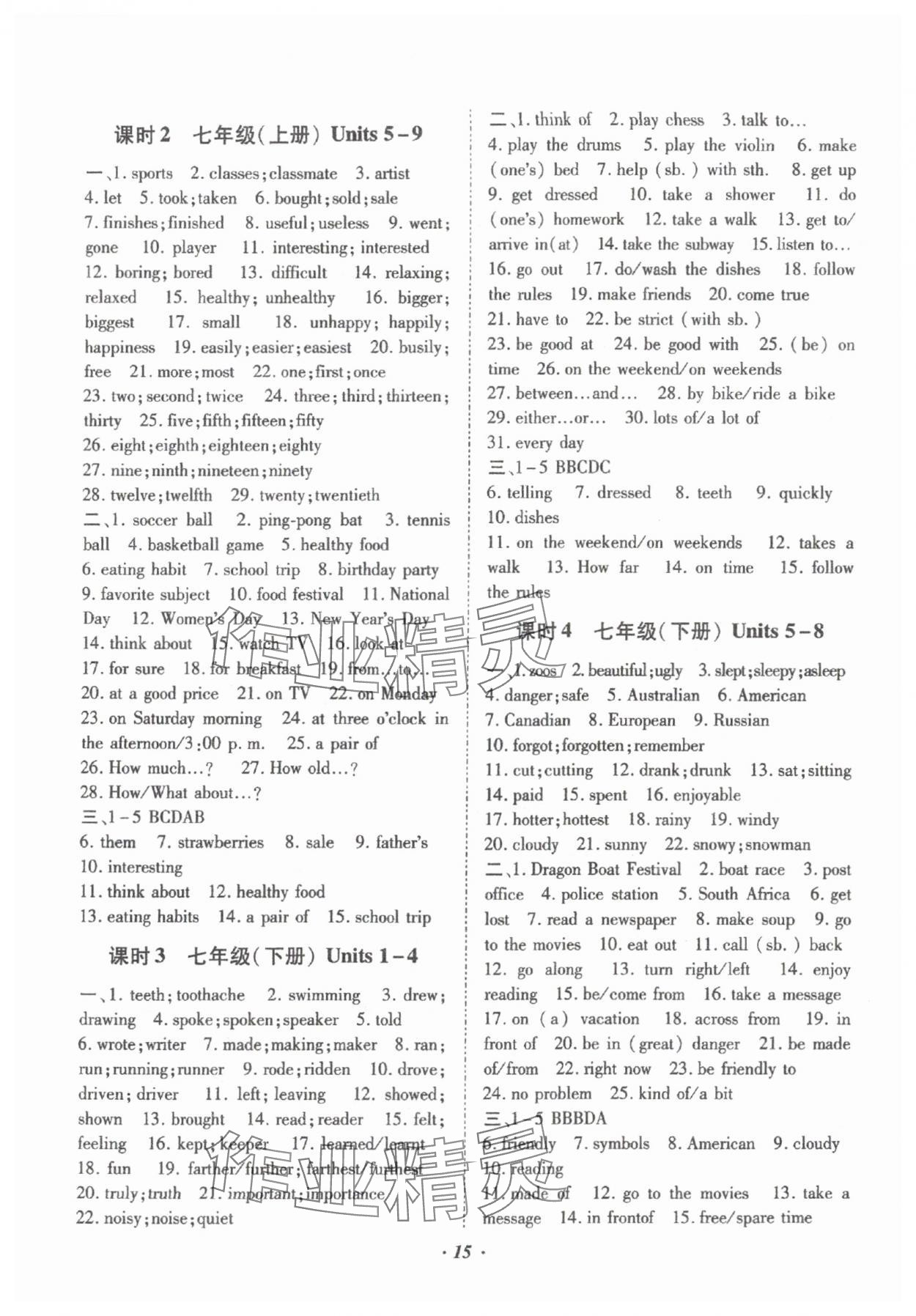 相关练习册答案