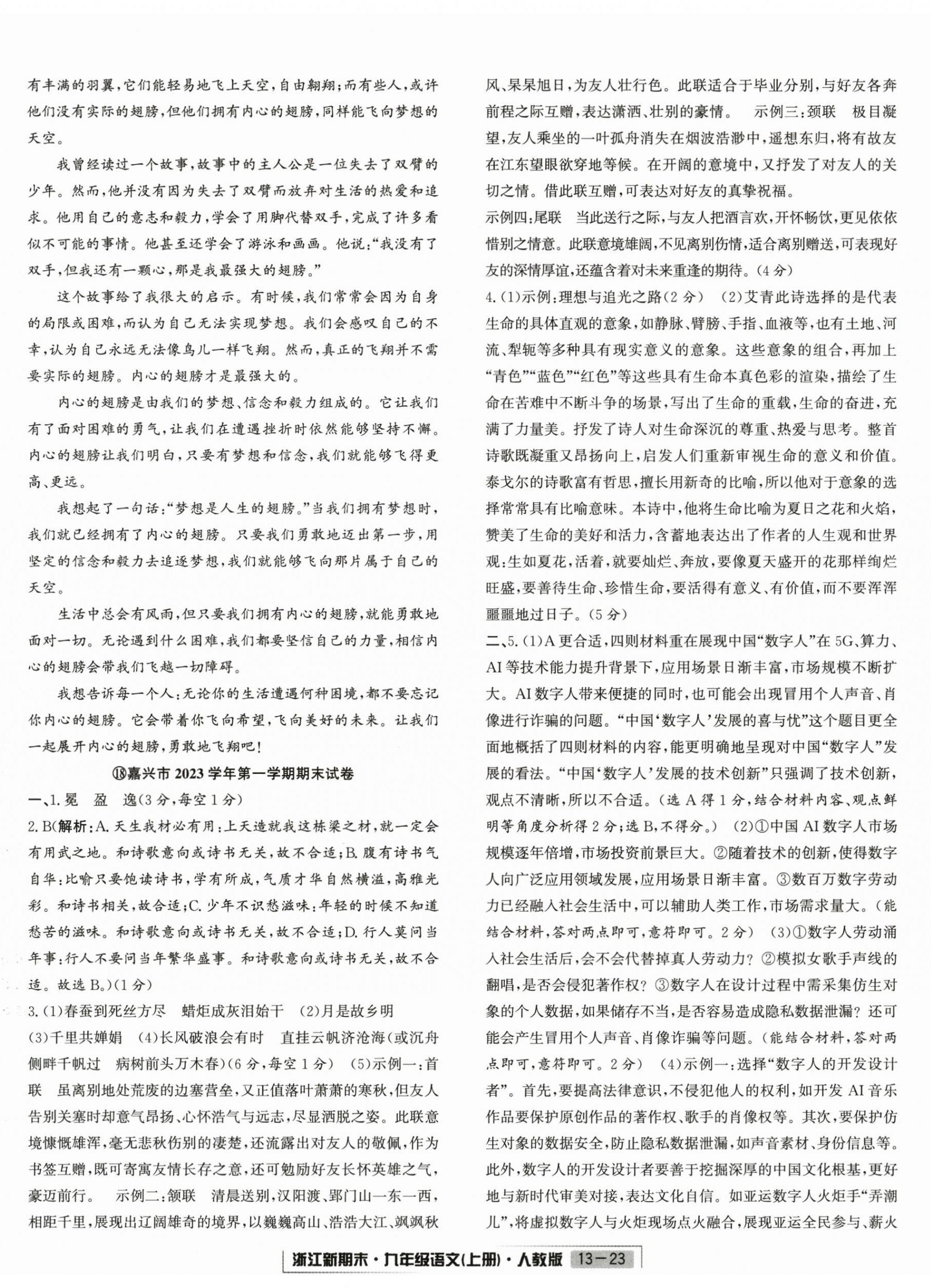 注:目前有些书本章节名称可能整理的还不是很完善,但都是按照顺序排列的,请同学们按照顺序仔细查找。练习册 2024年励耘书业浙江新期末九年级语文上册人教版 答案主要是用来给同学们做完题方便对答案用的,请勿直接抄袭。