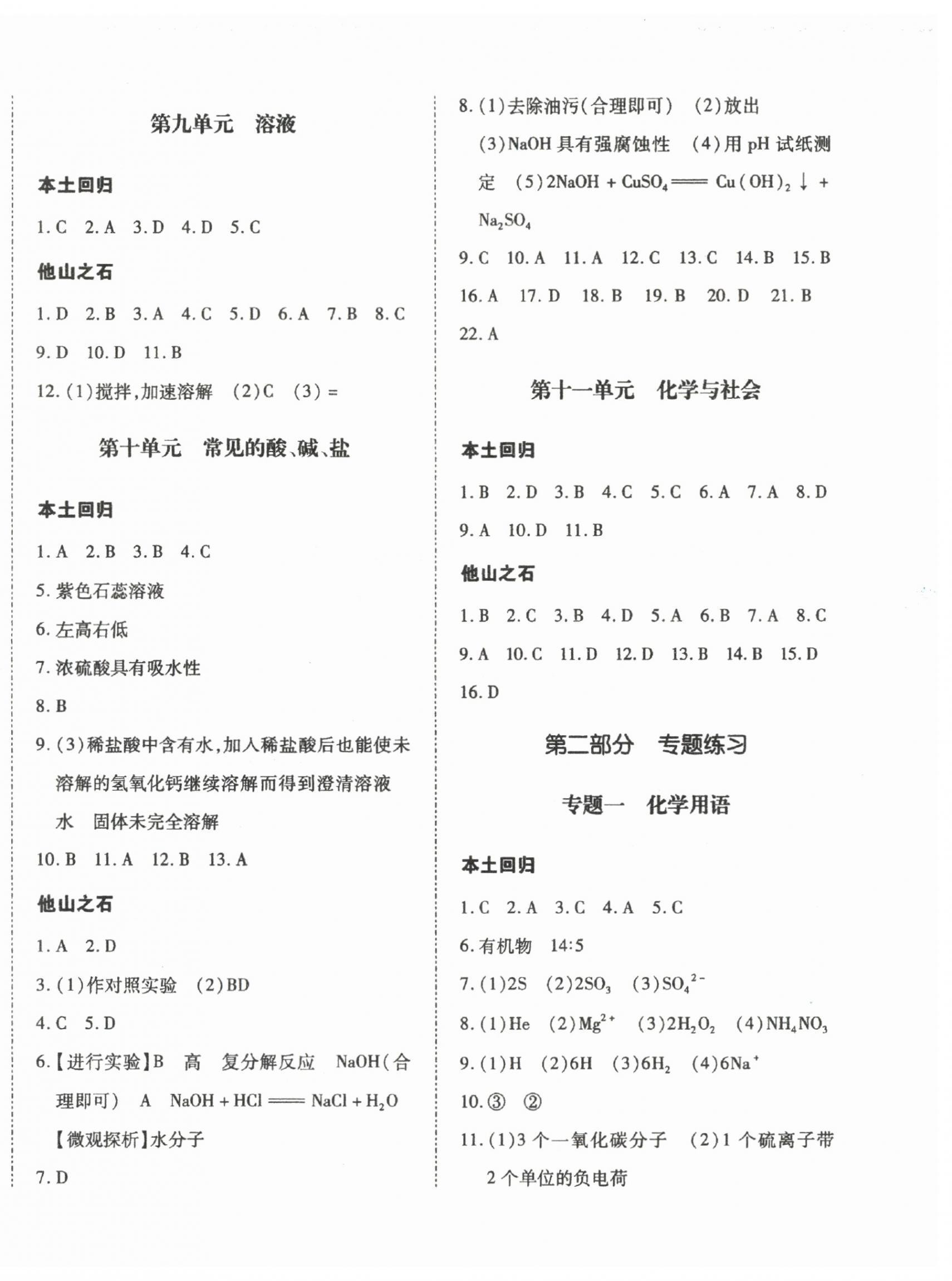 注:目前有些书本章节名称可能整理的还不是很完善,但都是按照顺序排列的,请同学们按照顺序仔细查找。练习册 2025年本土攻略精准复习方案化学中考云南专版 答案主要是用来给同学们做完题方便对答案用的,请勿直接抄袭。