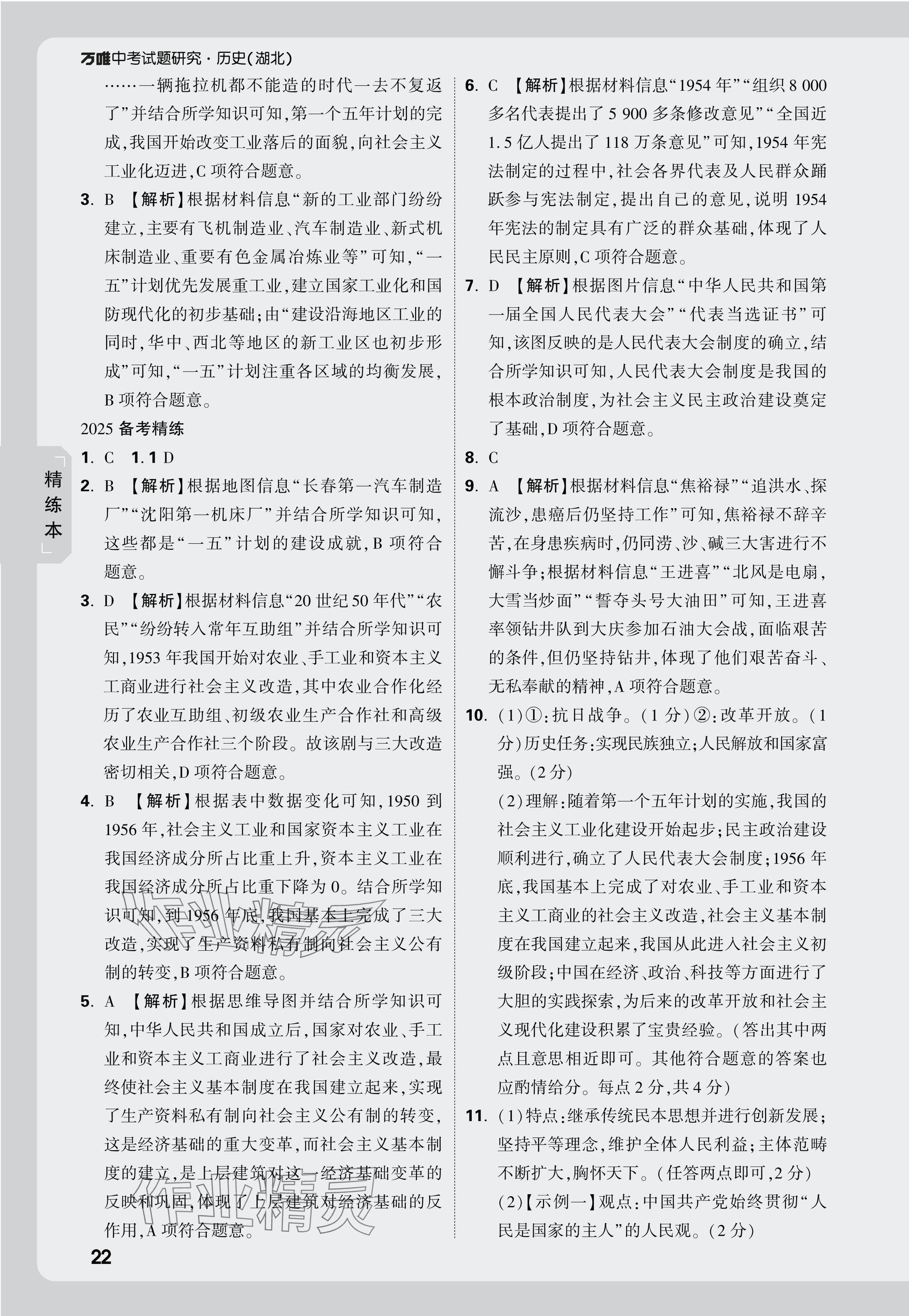 注:目前有些书本章节名称可能整理的还不是很完善,但都是按照顺序排列的,请同学们按照顺序仔细查找。练习册 2025年万唯中考试题研究历史中考湖北专版 答案主要是用来给同学们做完题方便对答案用的,请勿直接抄袭。