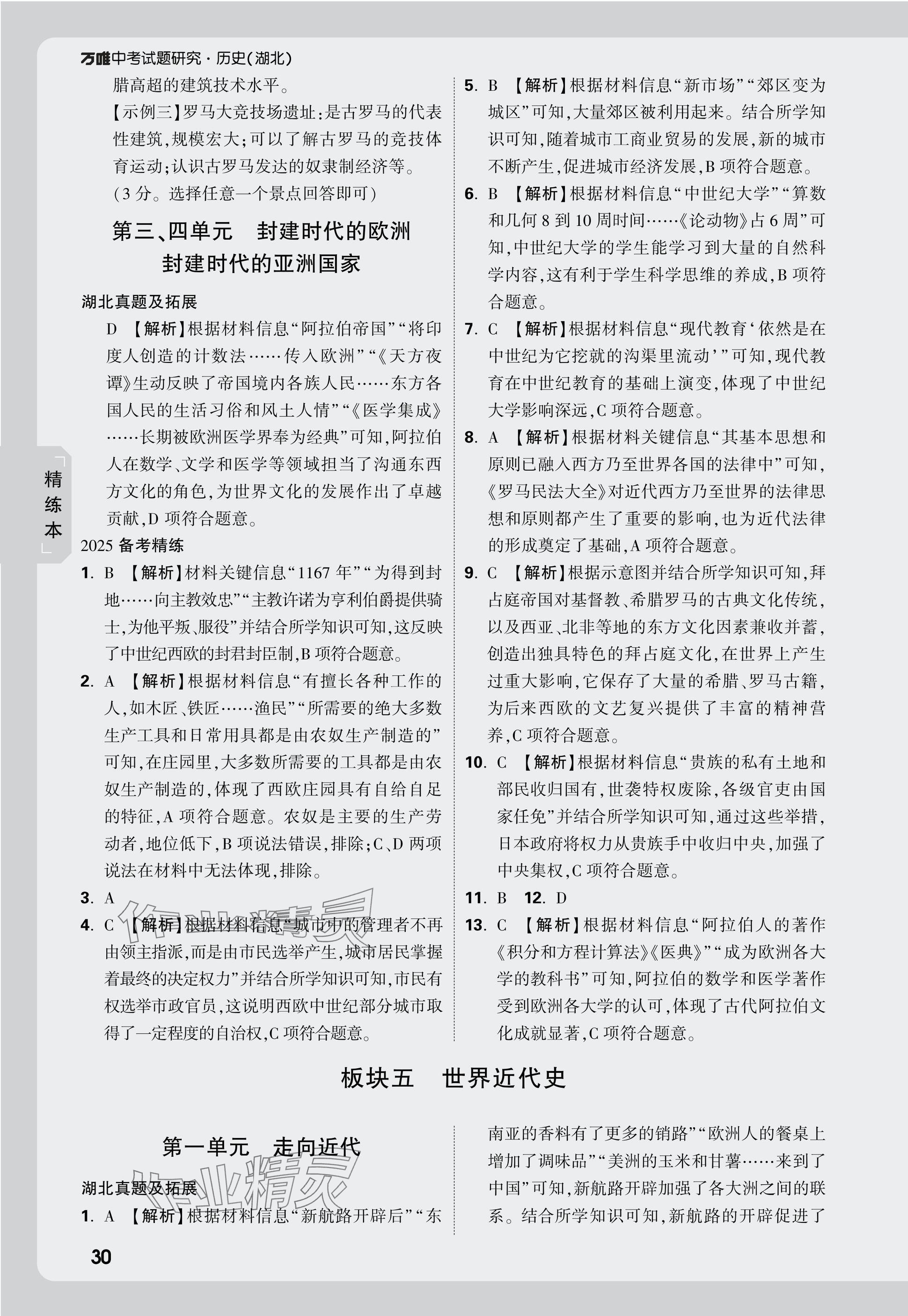 注:目前有些书本章节名称可能整理的还不是很完善,但都是按照顺序排列的,请同学们按照顺序仔细查找。练习册 2025年万唯中考试题研究历史中考湖北专版 答案主要是用来给同学们做完题方便对答案用的,请勿直接抄袭。