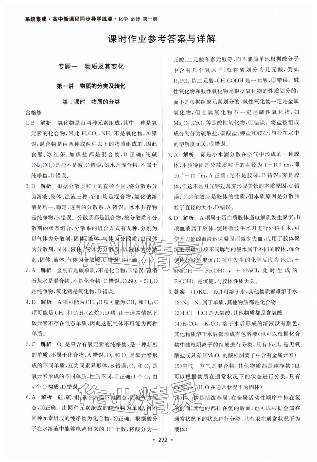 注:目前有些书本章节名称可能整理的还不是很完善,但都是按照顺序排列的,请同学们按照顺序仔细查找。练习册 2024年系统集成新课程同步导学练测高中化学必修第一册人教版 答案主要是用来给同学们做完题方便对答案用的,请勿直接抄袭。