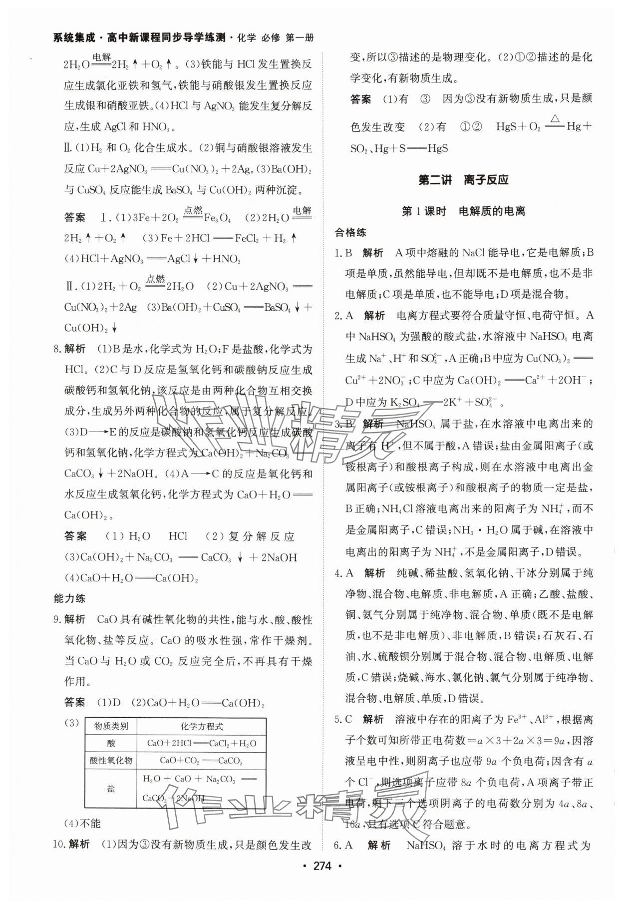 注:目前有些书本章节名称可能整理的还不是很完善,但都是按照顺序排列的,请同学们按照顺序仔细查找。练习册 2024年系统集成新课程同步导学练测高中化学必修第一册人教版 答案主要是用来给同学们做完题方便对答案用的,请勿直接抄袭。