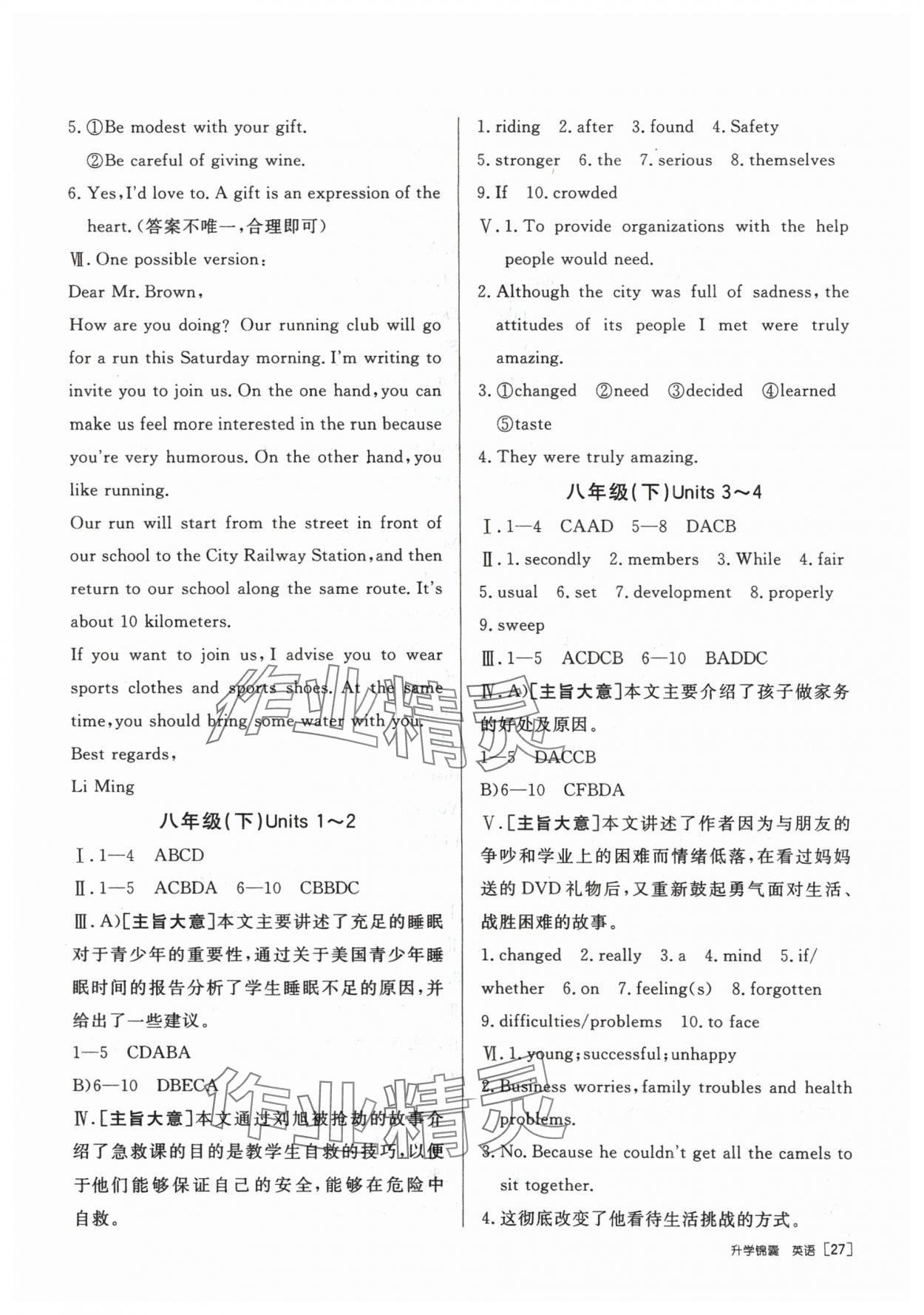 注:目前有些书本章节名称可能整理的还不是很完善,但都是按照顺序排列的,请同学们按照顺序仔细查找。练习册 2025年升学锦囊英语青岛专版 答案主要是用来给同学们做完题方便对答案用的,请勿直接抄袭。