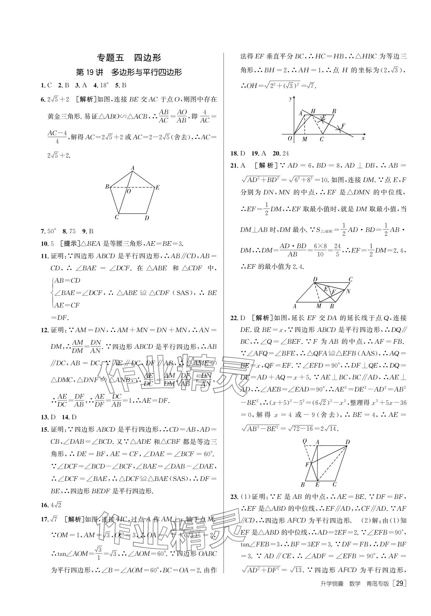 注:目前有些书本章节名称可能整理的还不是很完善,但都是按照顺序排列的,请同学们按照顺序仔细查找。练习册 2025年升学锦囊数学青岛专版 答案主要是用来给同学们做完题方便对答案用的,请勿直接抄袭。