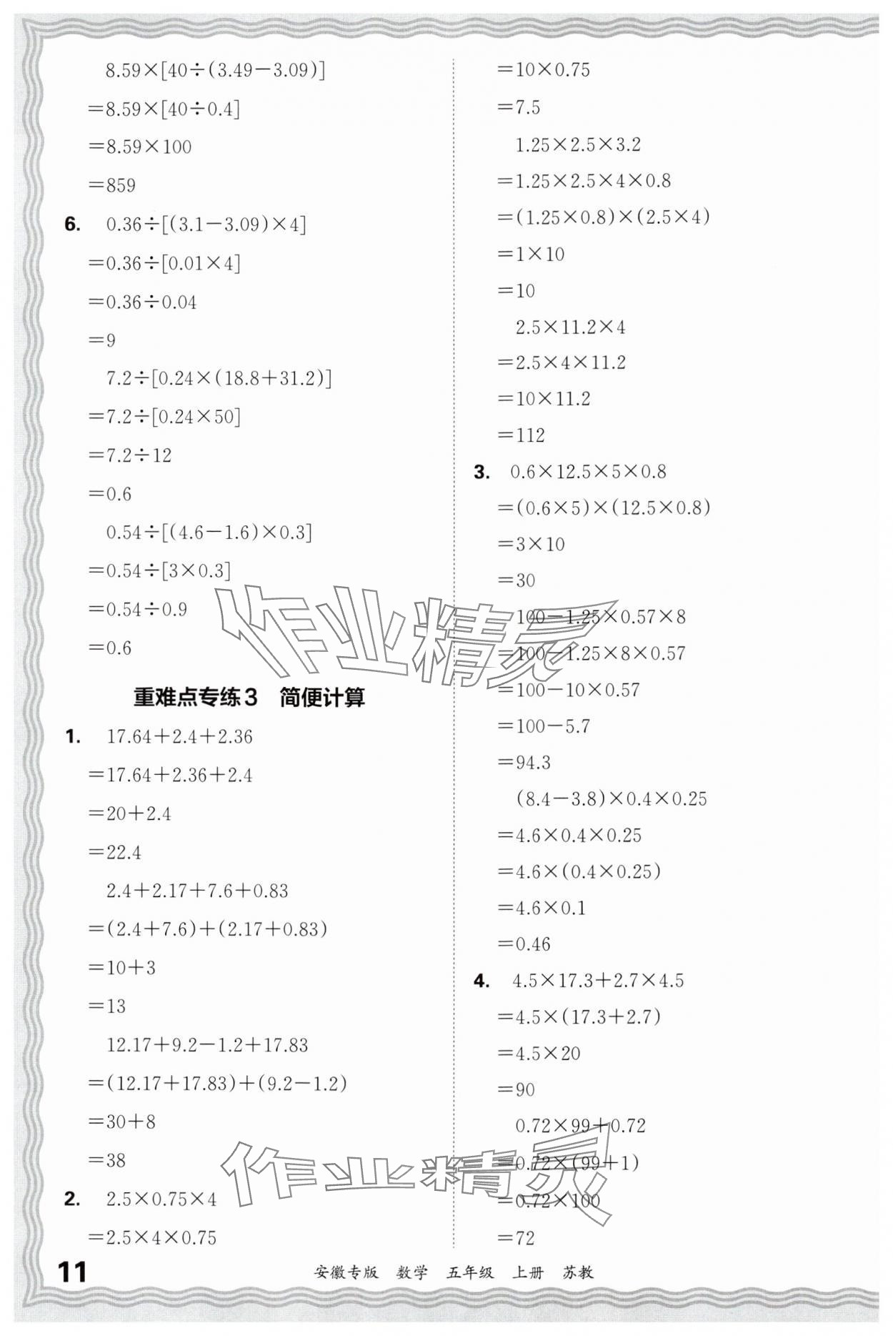 2024年王朝霞期末试卷研究五年级数学上册苏教版安徽专版