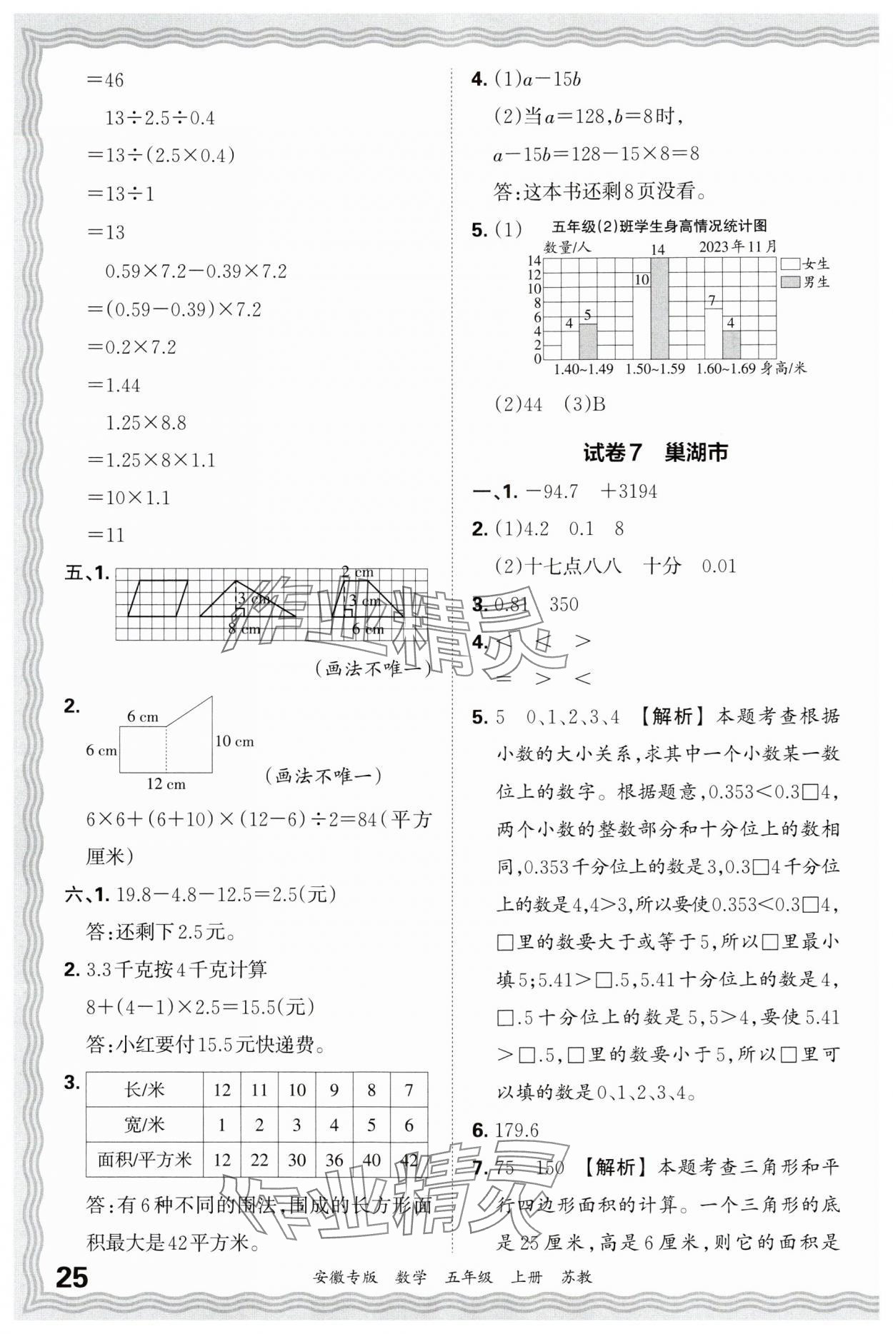 注:目前有些书本章节名称可能整理的还不是很完善,但都是按照顺序排列的,请同学们按照顺序仔细查找。练习册 2024年王朝霞期末试卷研究五年级数学上册苏教版安徽专版 答案主要是用来给同学们做完题方便对答案用的,请勿直接抄袭。
