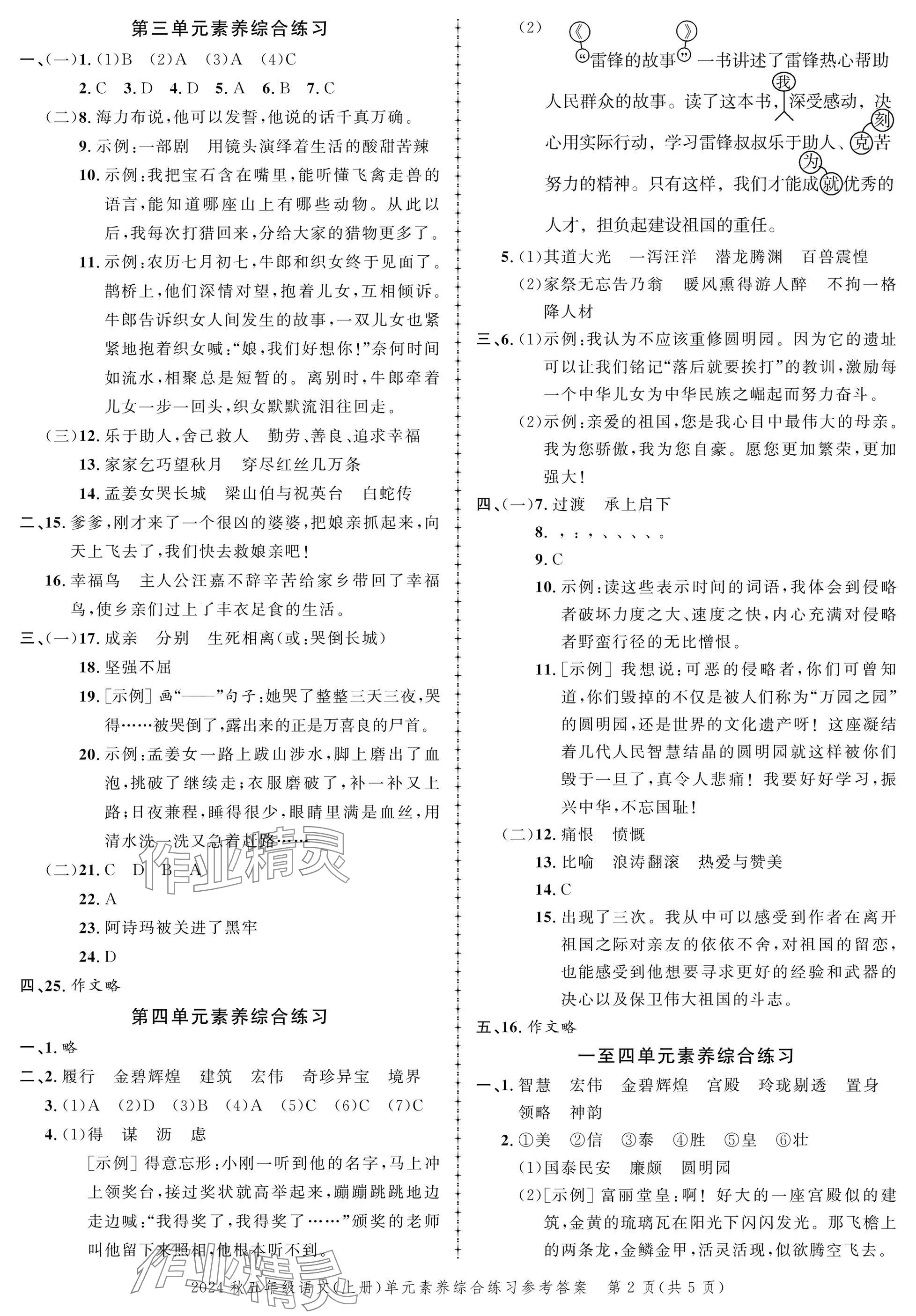 注:目前有些书本章节名称可能整理的还不是很完善,但都是按照顺序排列的,请同学们按照顺序仔细查找。练习册 2024年创新作业同步练习五年级语文上册人教版 答案主要是用来给同学们做完题方便对答案用的,请勿直接抄袭。