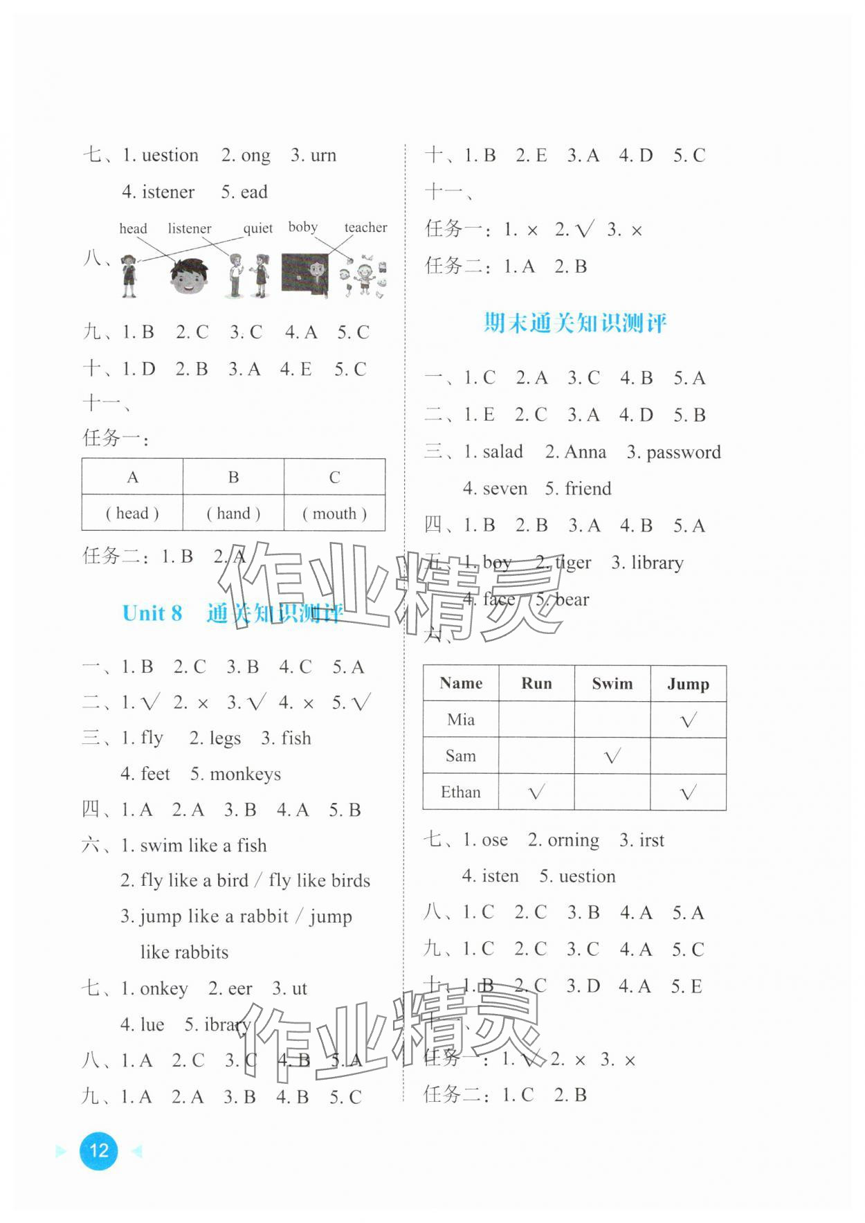 注:目前有些书本章节名称可能整理的还不是很完善,但都是按照顺序排列的,请同学们按照顺序仔细查找。练习册 2024年AI英语课时闯关三年级上册人教版广州专版 答案主要是用来给同学们做完题方便对答案用的,请勿直接抄袭。