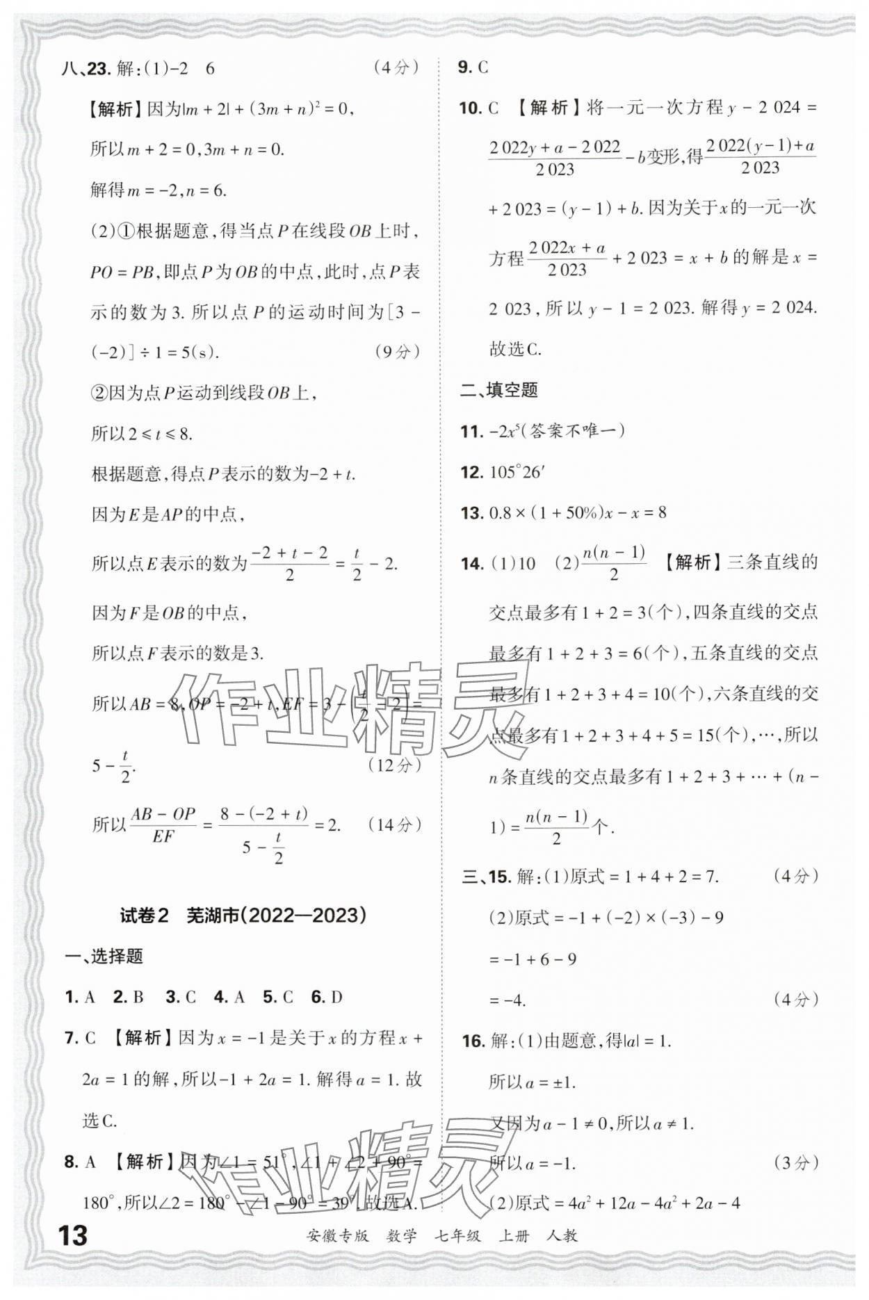 注:目前有些书本章节名称可能整理的还不是很完善,但都是按照顺序排列的,请同学们按照顺序仔细查找。练习册 2024年王朝霞各地期末试卷精选七年级数学上册人教版安徽专版 答案主要是用来给同学们做完题方便对答案用的,请勿直接抄袭。