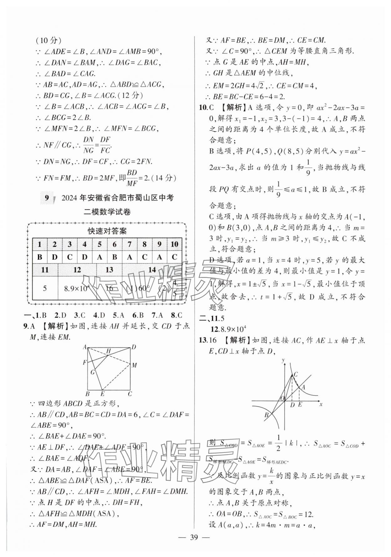 注:目前有些书本章节名称可能整理的还不是很完善,但都是按照顺序排列的,请同学们按照顺序仔细查找。练习册 2025年秒杀中考数学安徽专版 答案主要是用来给同学们做完题方便对答案用的,请勿直接抄袭。
