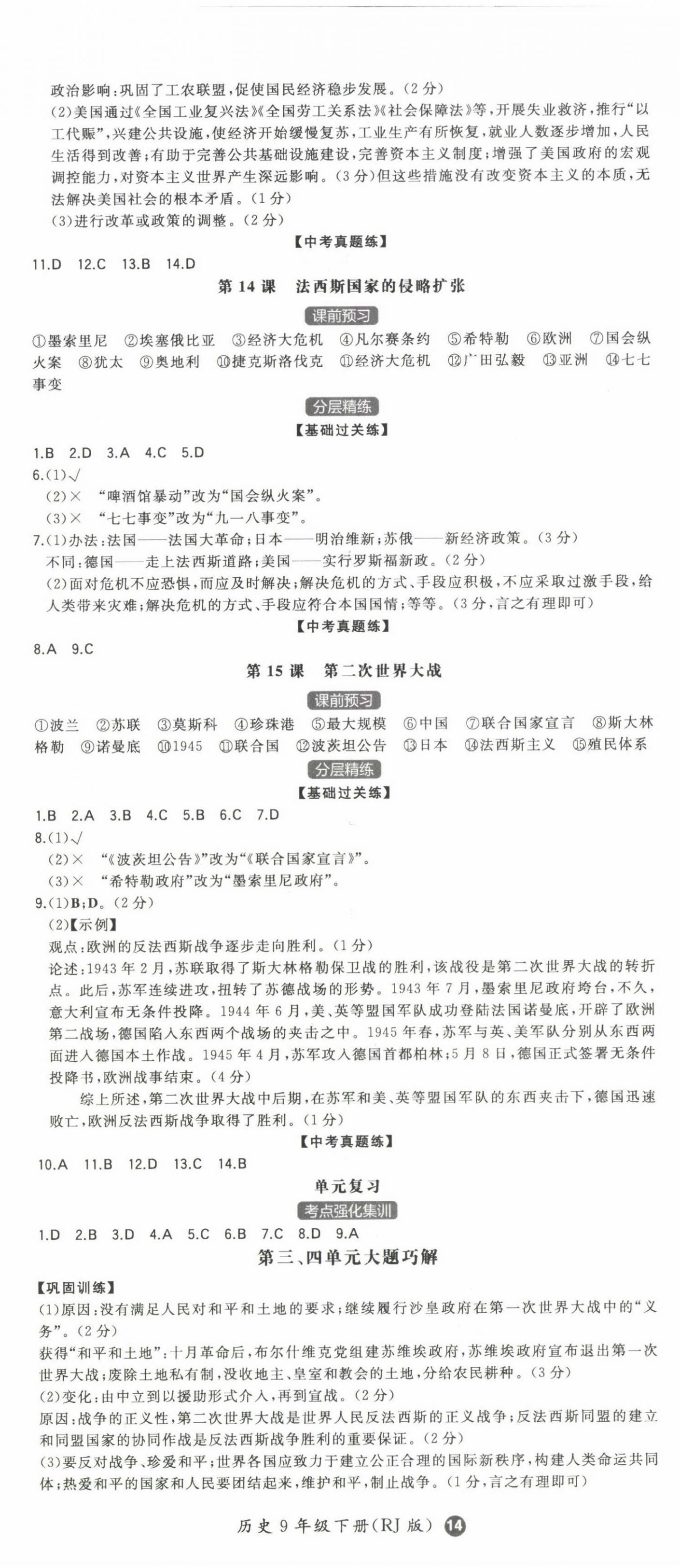 2025年一本同步训练初中历史九年级下册人教版安徽专版