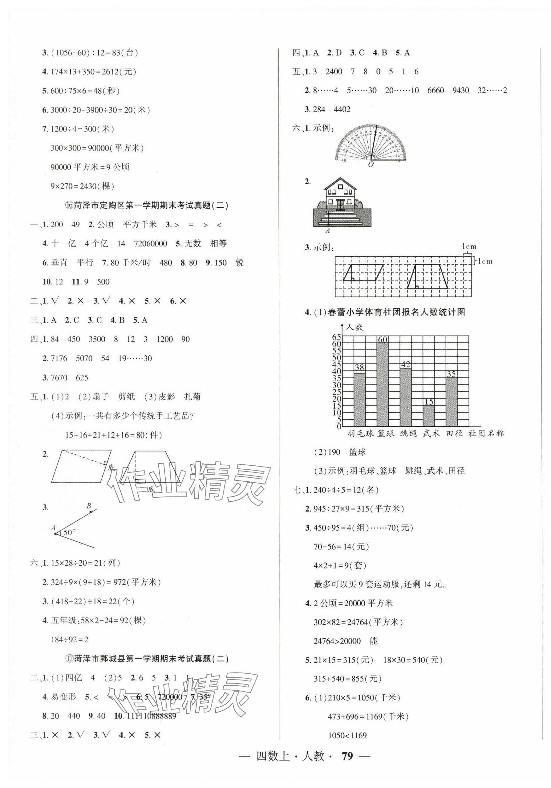 注:目前有些书本章节名称可能整理的还不是很完善,但都是按照顺序排列的,请同学们按照顺序仔细查找。练习册 2024年金牌期末好卷四年级数学上册人教版菏泽专版 答案主要是用来给同学们做完题方便对答案用的,请勿直接抄袭。