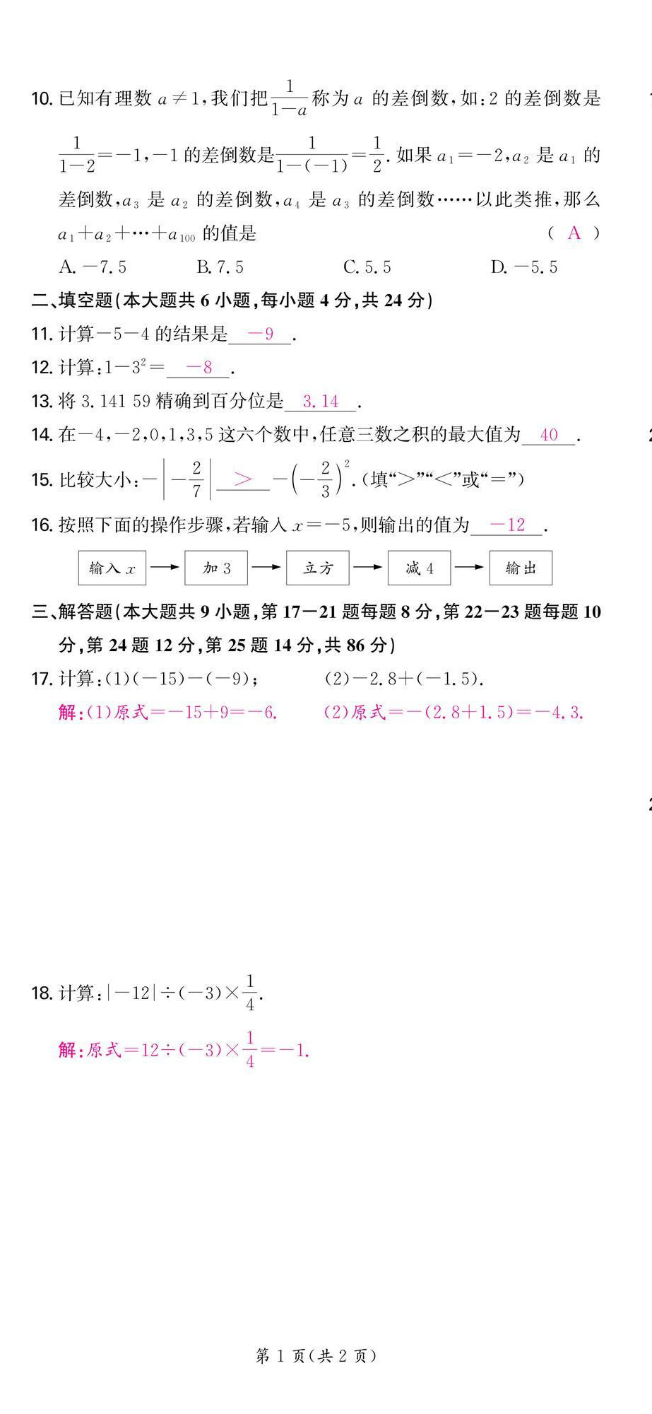 - 参考答案第73页