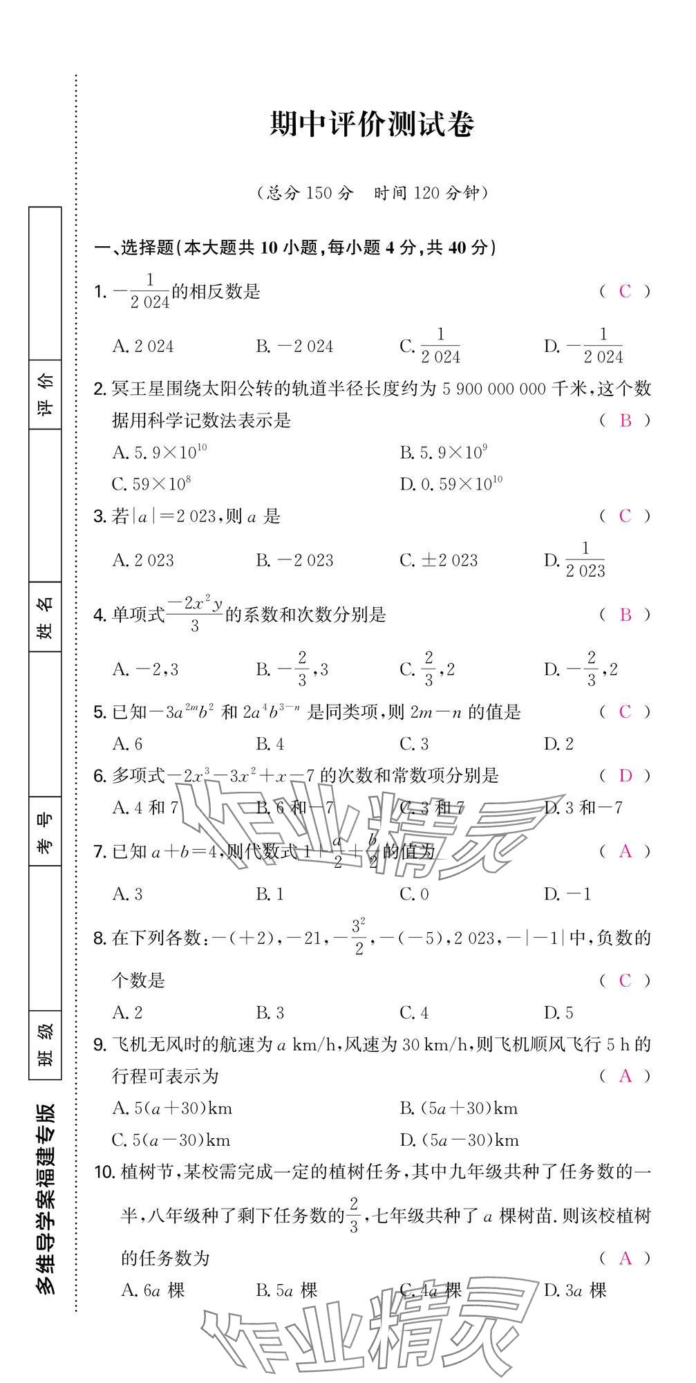- 参考答案第70页
