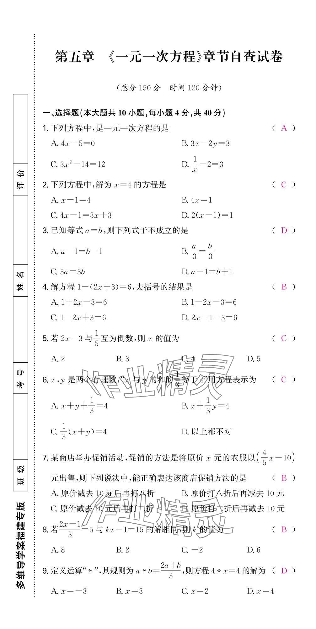 - 参考答案第51页