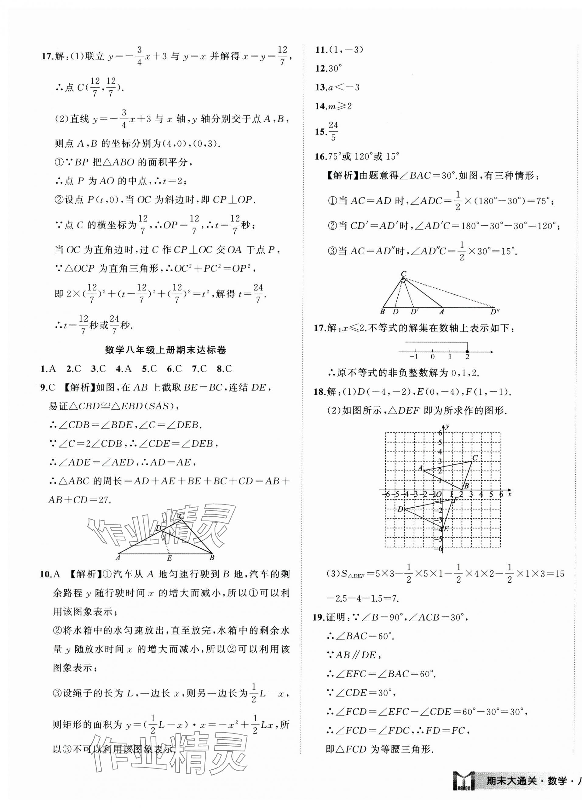 2024年名师面对面期末大通关八年级数学上册浙教版浙江专版