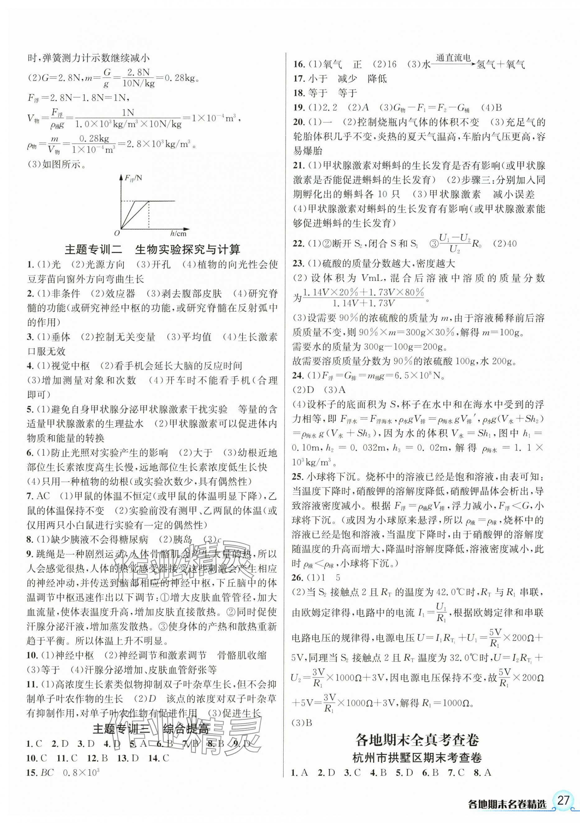 注:目前有些书本章节名称可能整理的还不是很完善,但都是按照顺序排列的,请同学们按照顺序仔细查找。练习册 2024年各地期末名卷精选八年级科学上册浙教版 答案主要是用来给同学们做完题方便对答案用的,请勿直接抄袭。