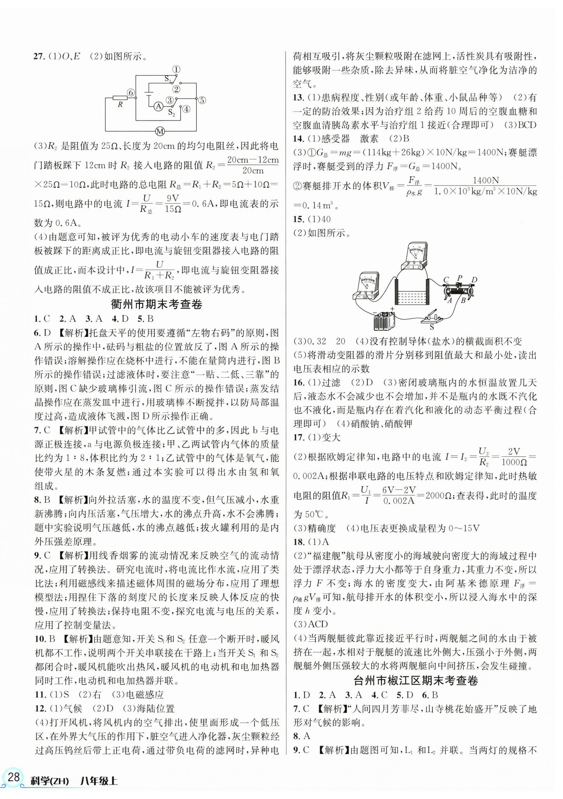 注:目前有些书本章节名称可能整理的还不是很完善,但都是按照顺序排列的,请同学们按照顺序仔细查找。练习册 2024年各地期末名卷精选八年级科学上册浙教版 答案主要是用来给同学们做完题方便对答案用的,请勿直接抄袭。