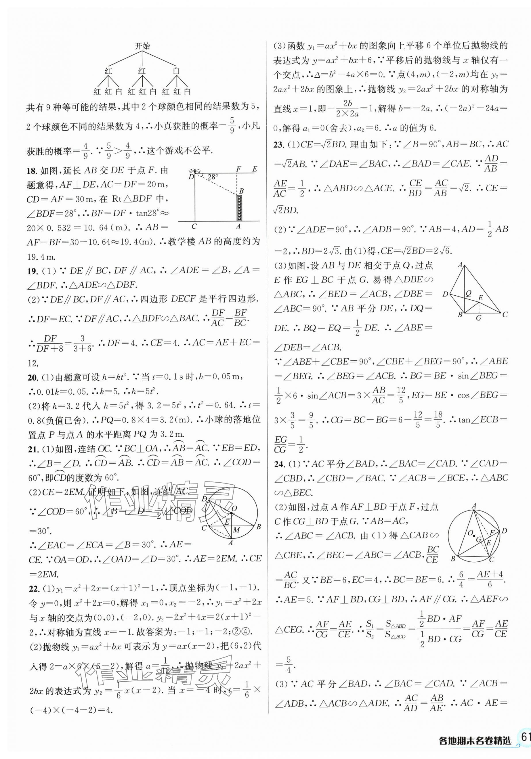 注:目前有些书本章节名称可能整理的还不是很完善,但都是按照顺序排列的,请同学们按照顺序仔细查找。练习册 2024年各地期末名卷精选九年级数学全一册浙教版 答案主要是用来给同学们做完题方便对答案用的,请勿直接抄袭。
