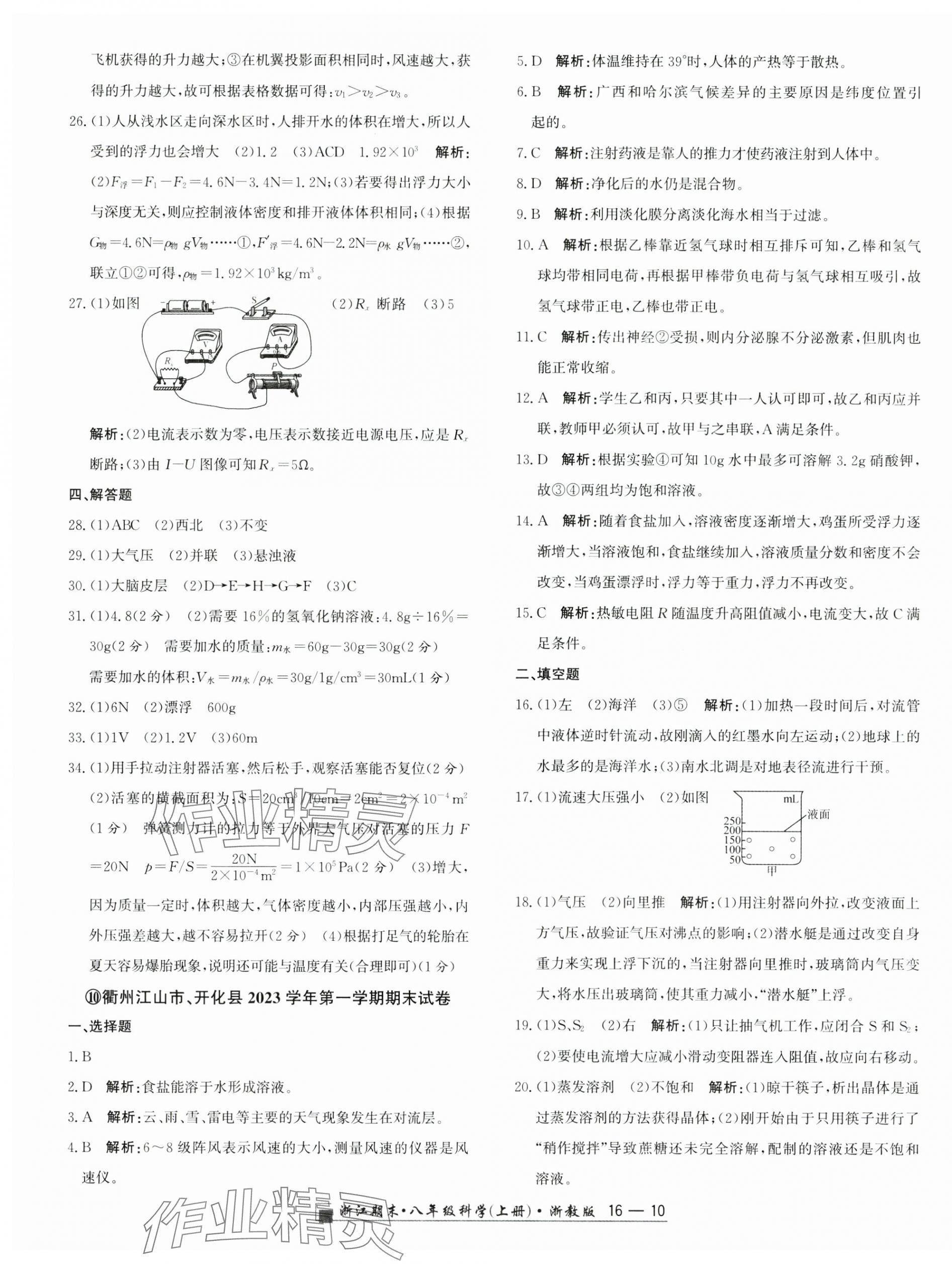 注:目前有些书本章节名称可能整理的还不是很完善,但都是按照顺序排列的,请同学们按照顺序仔细查找。练习册 2024年励耘书业浙江期末八年级科学上册浙教版 答案主要是用来给同学们做完题方便对答案用的,请勿直接抄袭。
